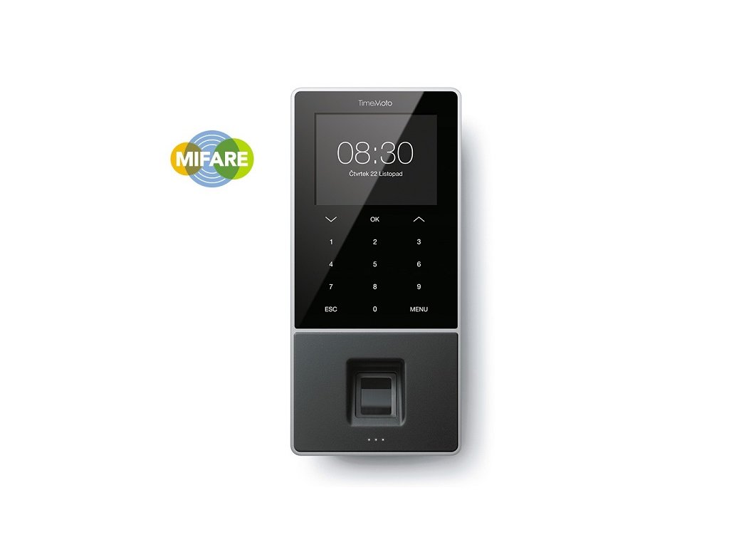 Docházkový systém TimeMoto na RFID kartu nebo otisk prstu, který spojuje nejnovější pokročilou identifikační technologii. Kompatibilní se systémy MIFARE a DESfire.