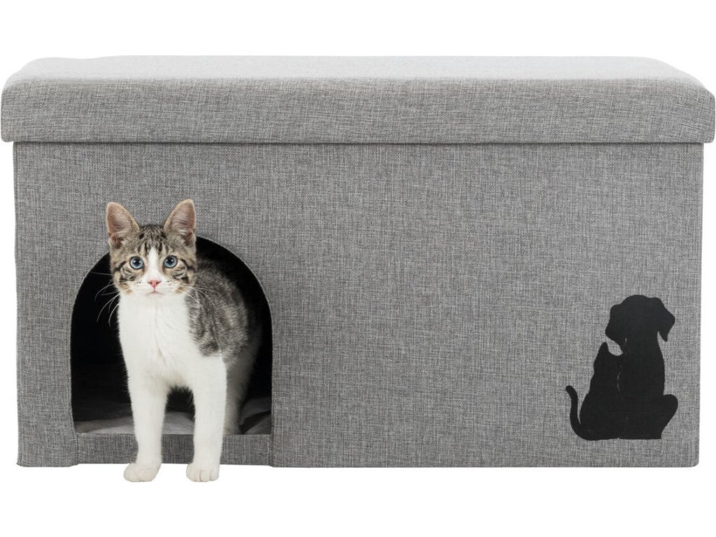 Domek/boudička KIMMY, tkaná látka, odnímatelné víko, 72x40x40cm, šedá