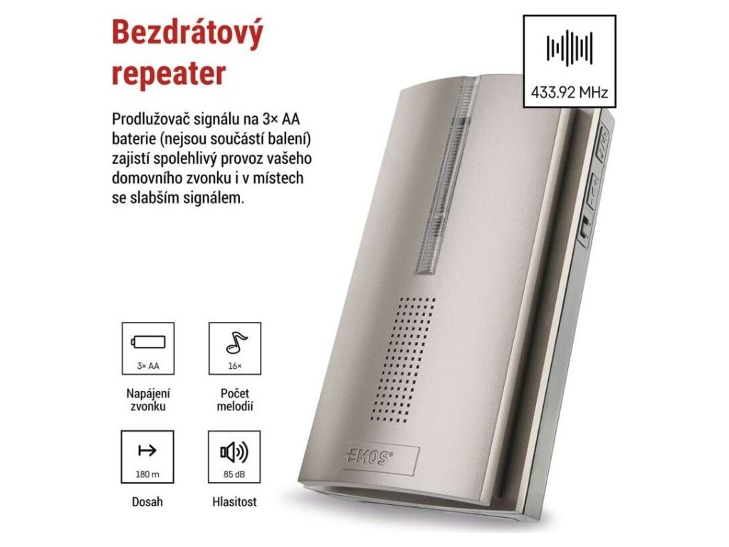 | Napájení hlavní jednotky: | 3× 1,5 V AA (nejsou součástí balení) |