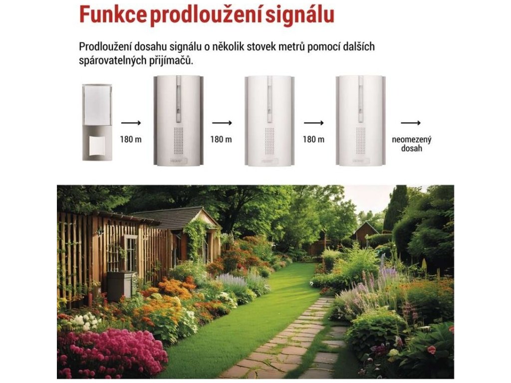 | Speciální funkce: | funkce repeater – umožňuje prodloužit dosah tlačítka o několik stovek metrů navíc. |