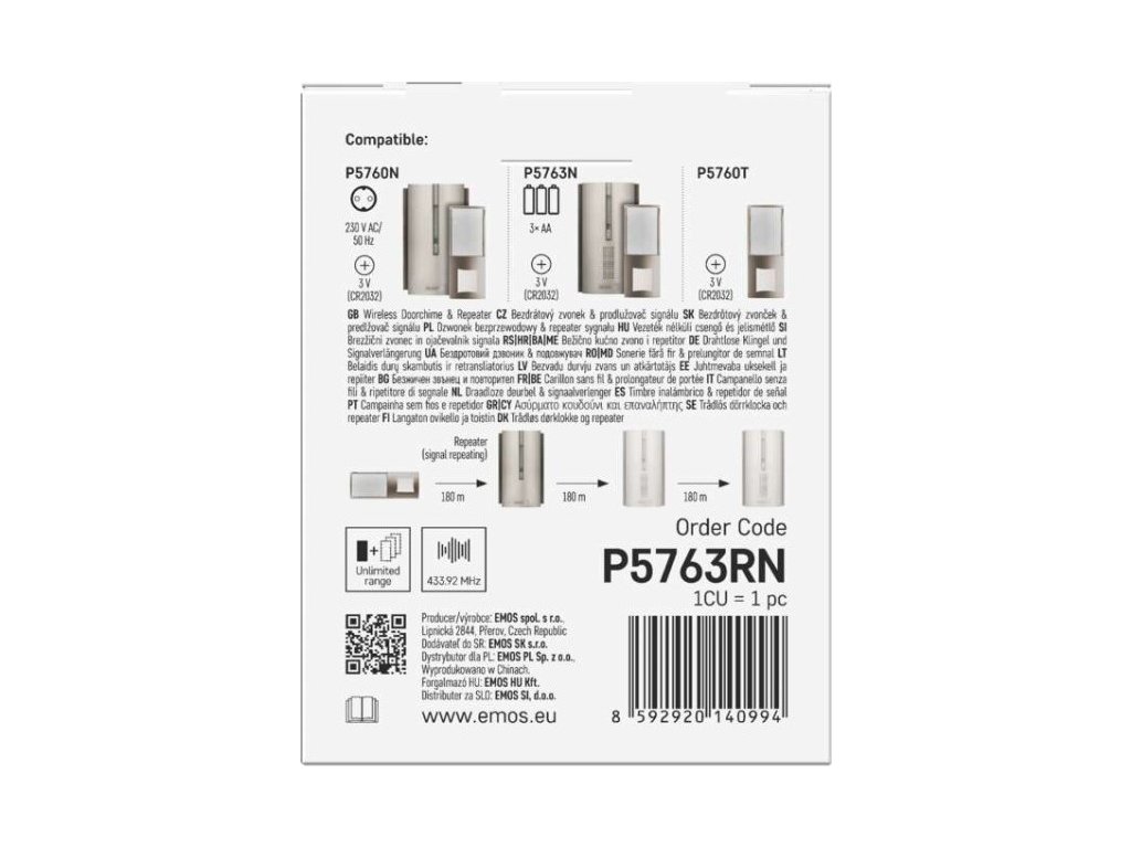 Domovní bezdrátový prodlužovač signálu pro P5760N a P5763N na 3× AA