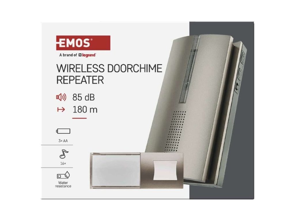 Spolehlivý zvonek s funkcí prodlužovače signálu (repeater), který se hodí nejen k domu, ale i bytu, nebo do kanceláře. Velkou předností tohoto zvonku je jeho bezdrátové provedení a možností prodloužení dosahu tlačítka zvonku.