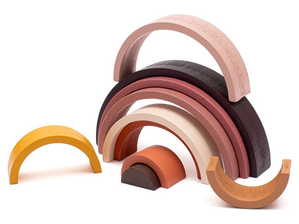 Dřevěná duha Brown Montessori Baby Mix přináší jednoduchý a elegantní způsob, jak rozvíjet dětskou kreativitu, jemnou motoriku a prostorové vnímání. Set dřevěných oblouků v přírodních hnědých odstínech nabízí široké možnosti pro hru a učení.