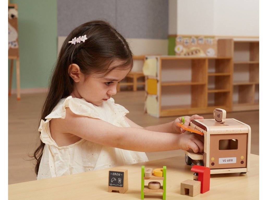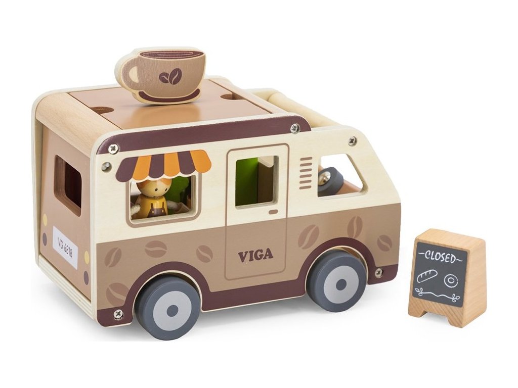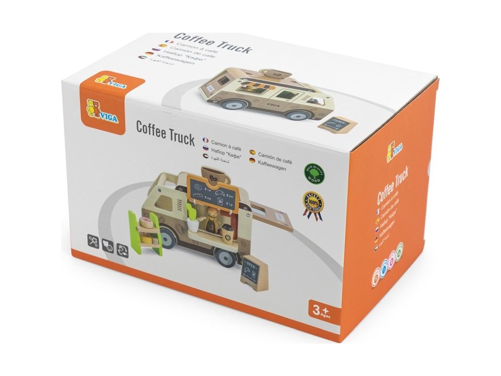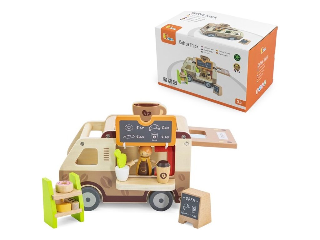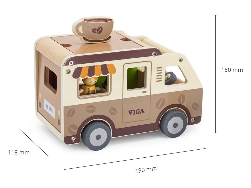 Pevná dřevěná konstrukce a jemné pastelové barvy nanesené netoxickými barvami činí hračku nejen esteticky příjemnou, ale i bezpečnou pro nejmenší. Sada je navržena s ohledem na rozvoj představivosti, manuálních dovedností a sociálních schopností dětí a nabízí mnoho hodin kreativní zábavy. Perfektní pro děti, které milují dobrodružství a sní o vlastní mobilní kavárně na kolech.