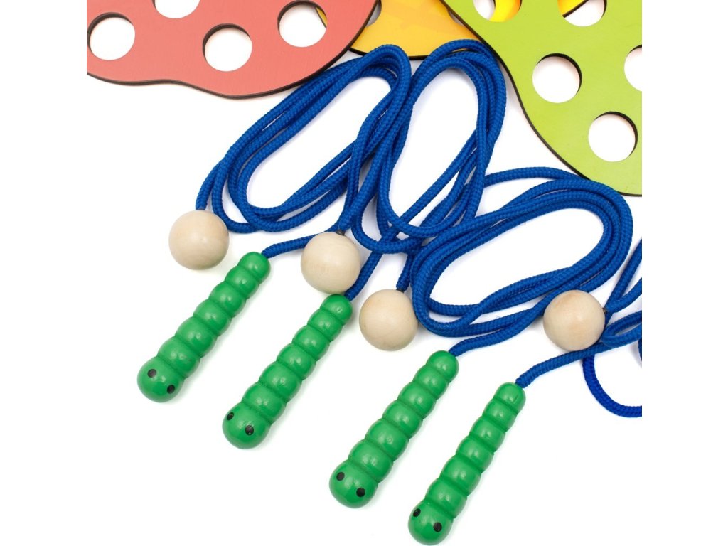 - Materiál: Kvalitní dřevo v kombinaci s měkkou bavlněnou šňůrkou, která je šetrná k dětským ručkám.