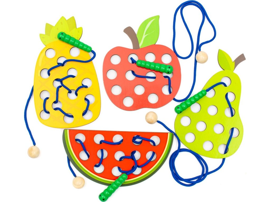 Dřevěná provlékačka ovoce a zelenina Montessori Baby Mix