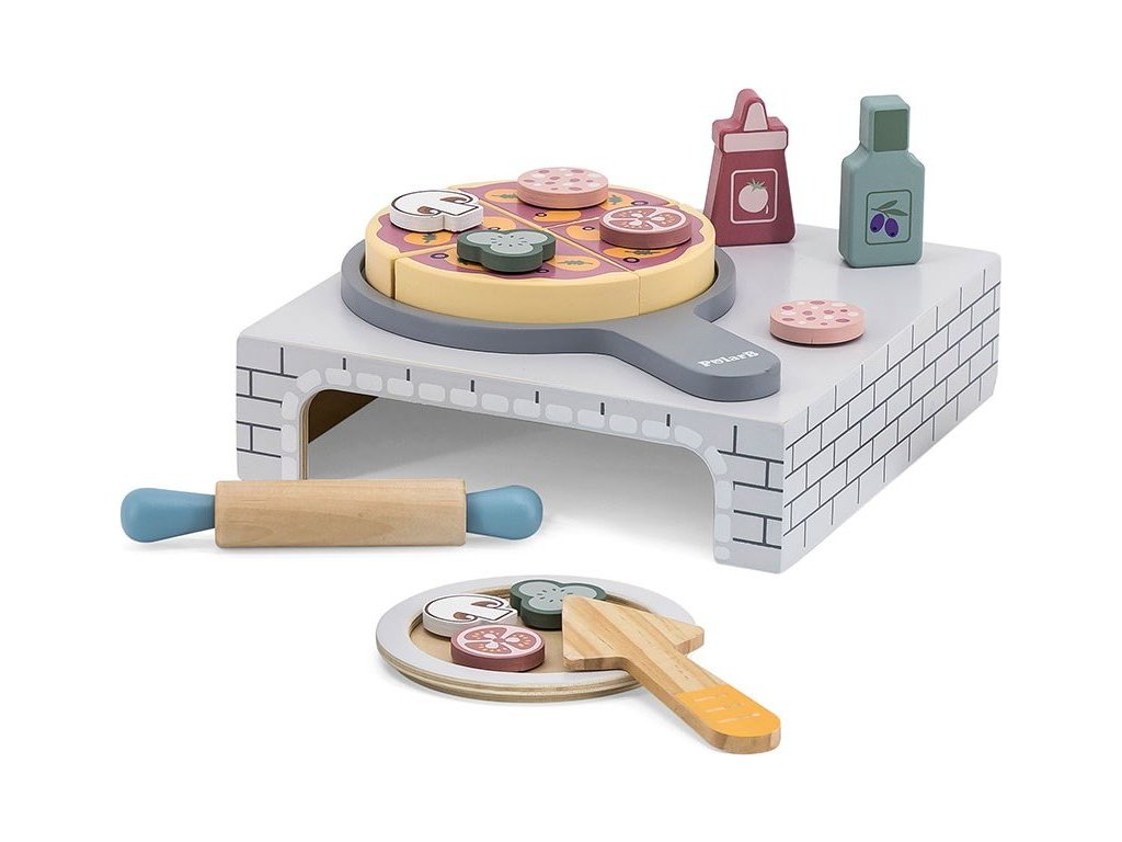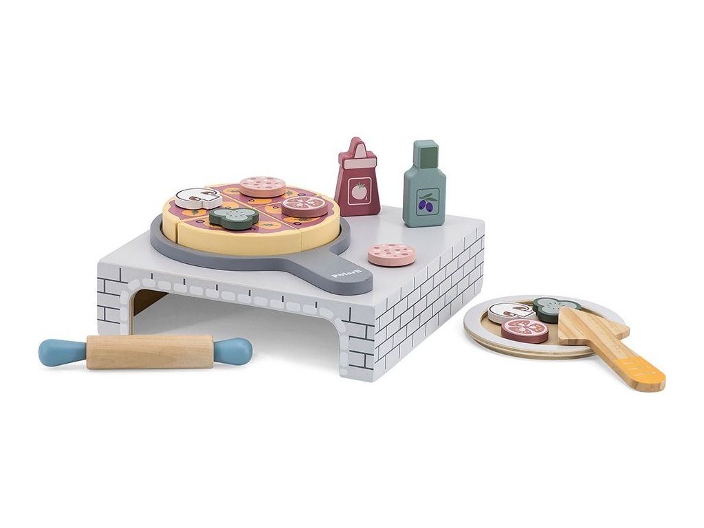 Něco pro malé kuchaře - lahodná a oblíbená pizza, kterou si nyní můžete připravit sami ve vlastní troubě. Plátky pizzy jsou spojeny suchým zipem, takže krájení pizzy působí přirozeněji. Na každém dílku je suchý zip pro připevnění náplně. Tím je zajištěno, že z pizzy nespadnou, a navíc může mít každý pizzu se svými oblíbenými posypkami. Tato sada hraček na pizzu pomáhá batolatům se základním vývojem, zlepšuje motoriku, kreativitu a sociální dovednosti.