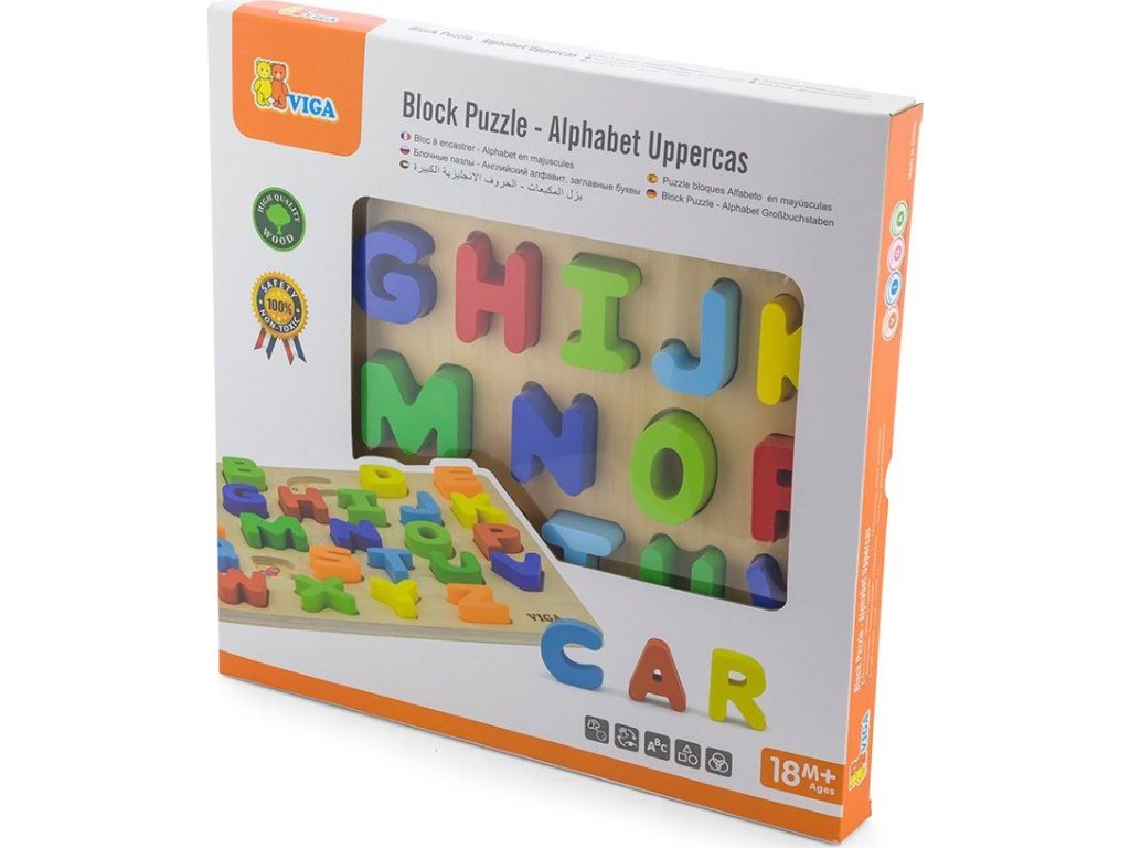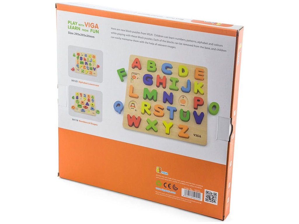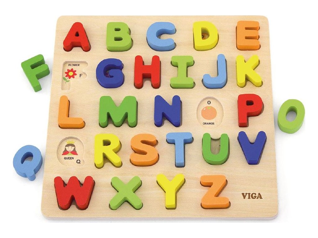 Vkládanka Abeceda na podložce od společnosti Viga je ideálním dárkem, který potěší každé dítě. Tato funkční hračka díky výrazným barvám, trojrozměrným tvarům a obrázkům zabaví vaše děťátko na dlouhé hodiny. Děti musí správně přiřadit dřevěná písmena abecedy k otvorům v podložce. Na každém otvoru je obrázek, který podněcuje dětskou zvědavost a usnadňuje přiřazování písmen. Malé děti si tak formou hry procvičují manuální zručnost a zároveň se učí písmenka.
