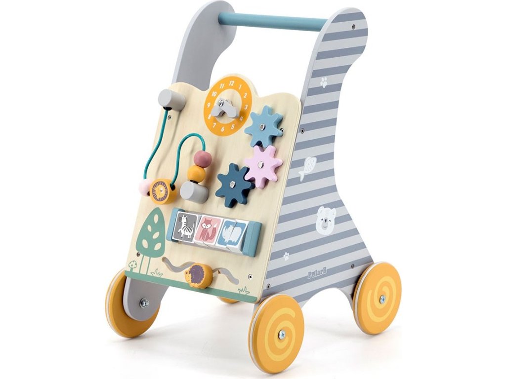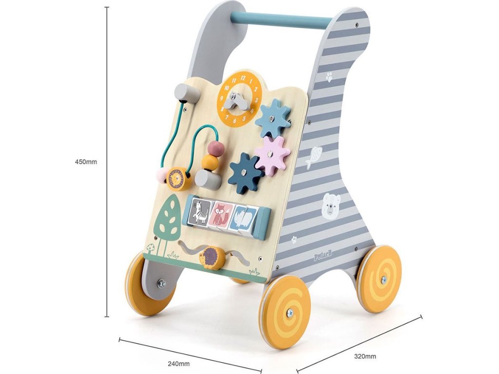 Chůze s dětským chodítkem usnadňuje udržení rovnováhy při zdokonalování chůze. Chodítko bylo navrženo s ohledem na ty nejmenší. Je výjimečně stabilní a zároveň bezpečné, vyrobené z bukového dřeva nejvyšší kvality. Hračka dokonale kombinuje funkci chodítka a vzdělávacího panelu. Na kterém jsou úžasné atrakce. Hračka navíc rozvíjí představivost a kreativní myšlení.