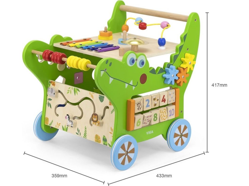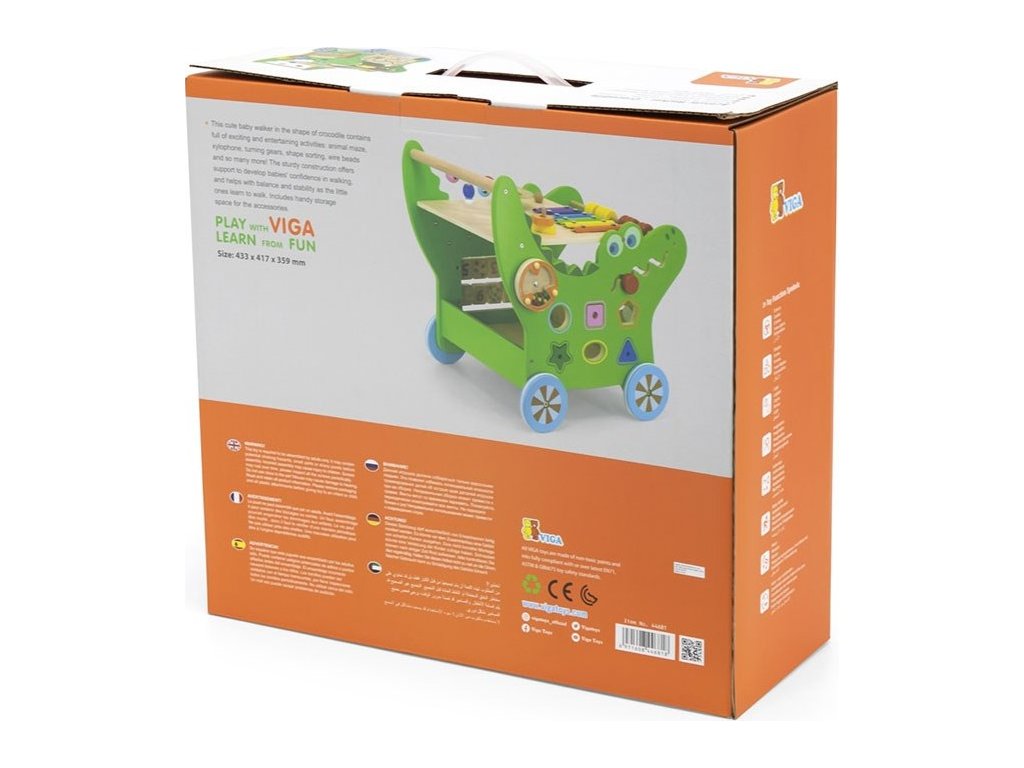 Chodítko od společnosti Viga bylo navrženo s ohledem na nejmenší děti, aby mohly bezpečně a stabilně dělat své první krůčky. Hračka dokonale kombinuje funkci chodítka i výukového panelu, který učí čísla, přiřazování tvarů a barev. Kromě toho rozvíjí představivost, manuální dovednosti, koordinaci ruka-oko a kreativní myšlení. Další výhodou našeho chodítka jsou protiskluzové gumy, které se nasazují na dřevěná kolečka. Ty zabraňují uklouznutí dítěte a chrání podlahu. Díky, tomuto dětskému chodítku budete rychle pozorovat, jak si vaše dítě osvojuje nové motorické a manuální dovednosti.