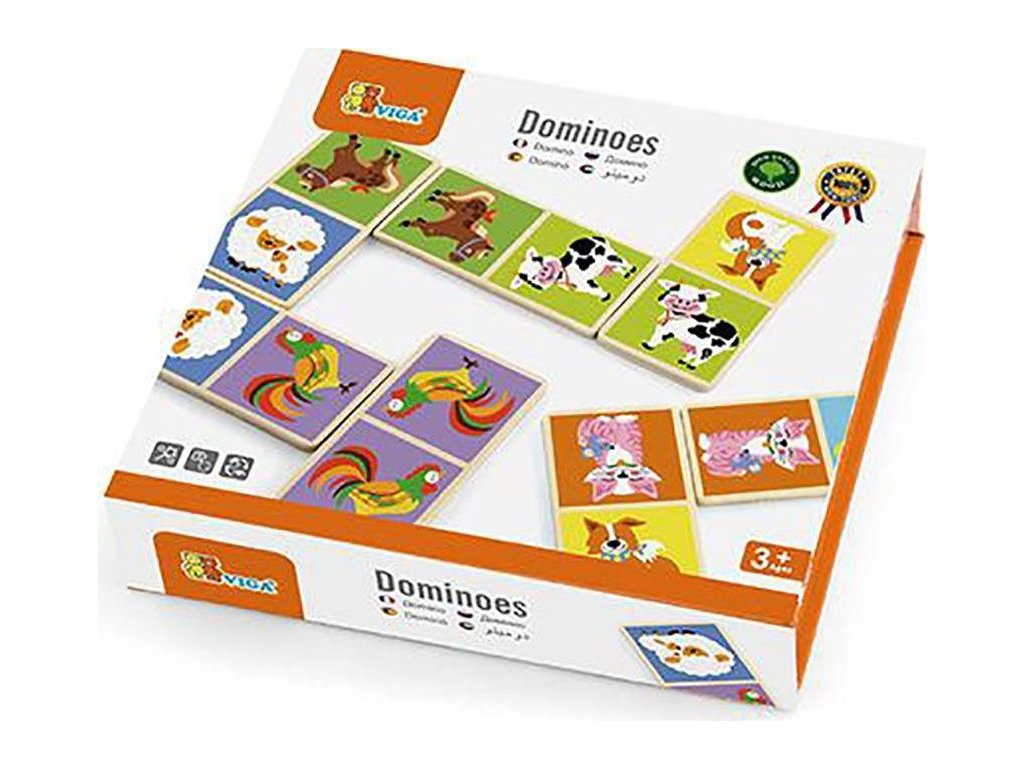 "Domino" od společnosti Viga je jednou z nejkrásnějších her, která vydrží dlouho a poskytne vašemu dítěti mnoho let zajímavé a kreativní hry. Všechna zvířátka a jejich funkce v našem životě vzbudí zvědavost o světě a podpoří napodobování zvuků a pomůže naučit se říkanky a písničky. Dítě si bude stále rychleji všímat podobností mezi zvířátky... s každým dnem hra vykouzlí na dětské tváři větší a větší úsměv, každé vítězství je bude dále motivovat k učení nových říkanek. Naučí přesnosti a pečlivosti při uspořádávání kostek. Barevné domino je příjemné na pohled a podporuje hru. Cílem hry je poskládat všechny kostky na sebe. Kdo je první? Ten lepší! Společně strávený čas s vaším dítětem se postará o nezapomenutelné chvíle a skvělou zábavu.