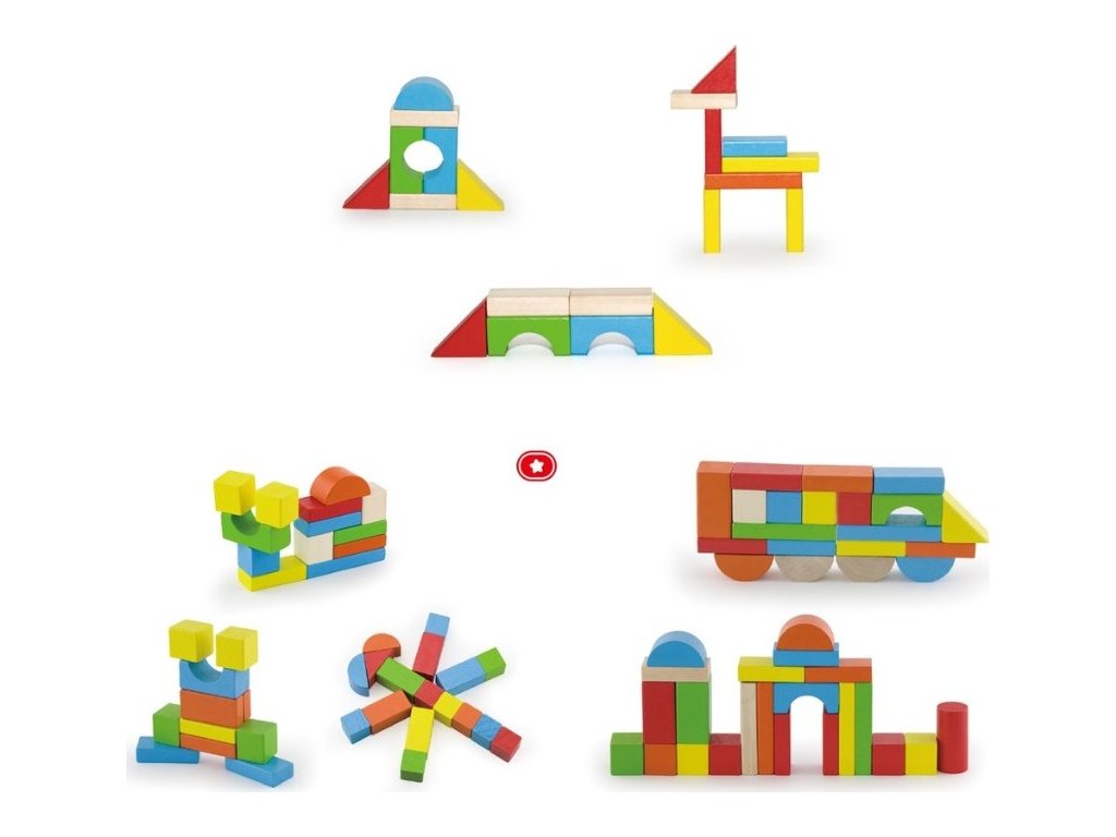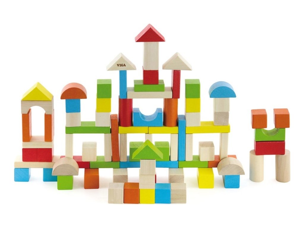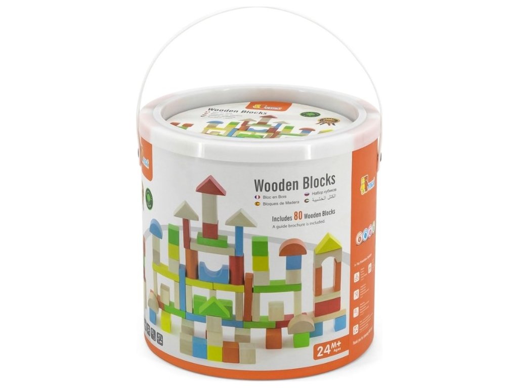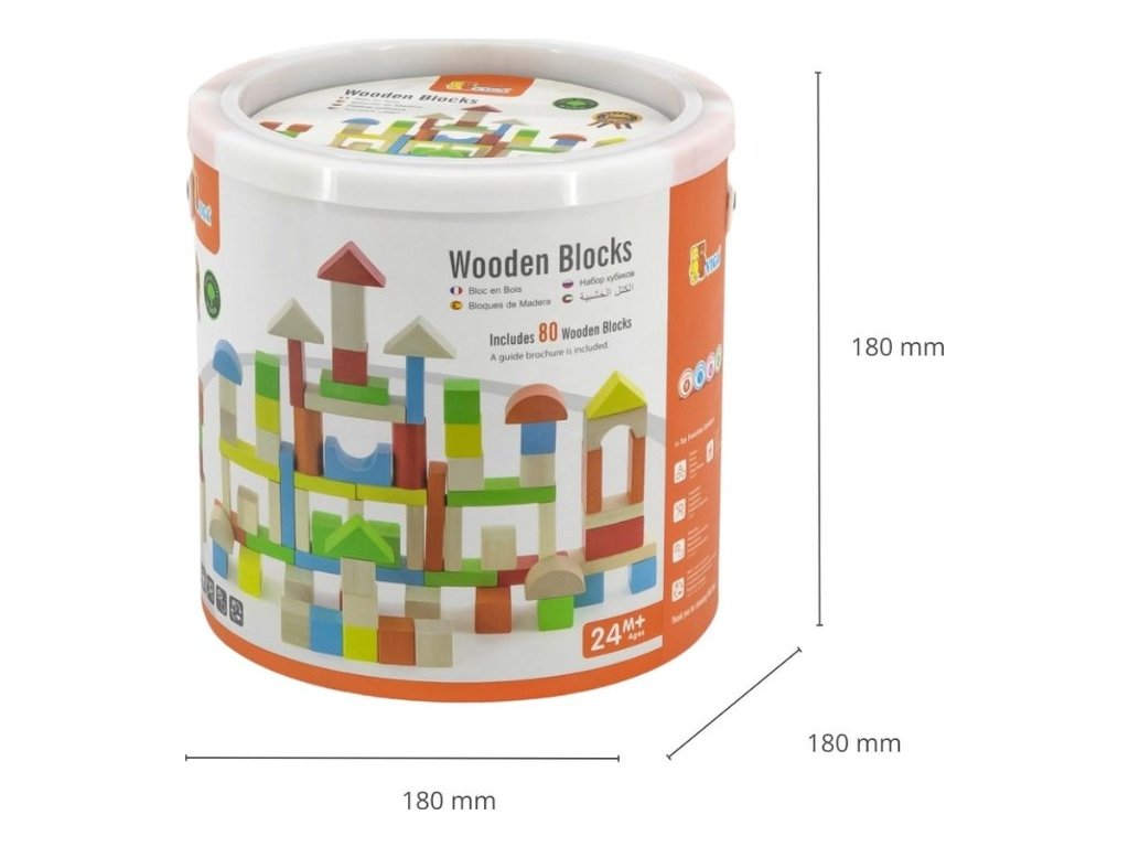 Krásné, barebné, dřevěné kostky v kyblíku Viga. Přináší 80 krásně barevných dílů i pro ty nejmenší stavitele. Stavebnice vydrží dlouhou dobu a dává vašemu dítěti mnoho let zajímavé a tvůrčí hry. Kostky mají různé tvary, velikosti, krásné barvy. Najdete zde tvary jako krychle, kvádr, trojuhleník, válec, obdélník, most, ad. Tento kyblík s kostkami tak slouží jako motorická pomůcka, která děti učí poznávat tvary a zacházet s kostkami. Hračka pomáhá zlepšit manuální zručnost a obratnost, učí dítě rozpoznat tvary a barvy, zapojuje a rozvíjí smysl pro pozorování. Hračka je vyrobena z lakovaného dřeva. Naší prioritou je bezpečnost a kvalita našich výrobků, a proto barvy použité na hračkách nejsou toxické a splňují bezpečnostní standardy (EN71 a ASTM). Pro děti od 2 let. Hračka je vhodná jako krásný dárek pro naše nejmenší.