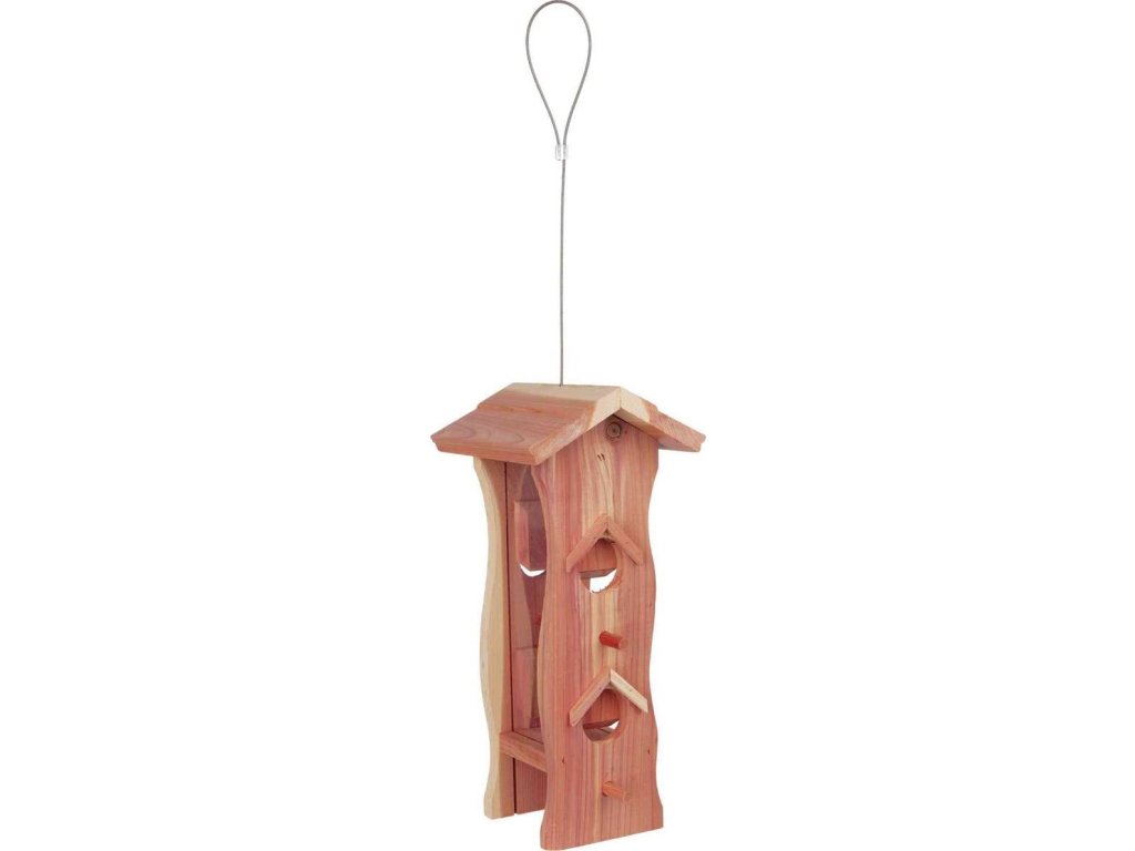Dřevěné krmítko z cedrového dřeva a plexiskla, se stupačkou