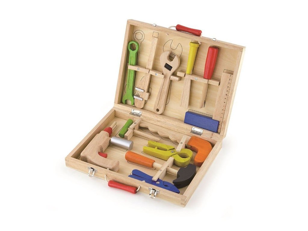 Dřevěný kufřík na nářadí poskytne vašemu dítěti mnoho let zajímavé a kreativní hry. Ideální dárek pro chlapce, který rád napodobuje svého tatínka při drobných domácích pracích. Nyní můžete společně se svým dítětem opravovat, šroubovat a zatloukat hřebíky. Čas strávený společně s dítětem zůstane ve Vás navždy.