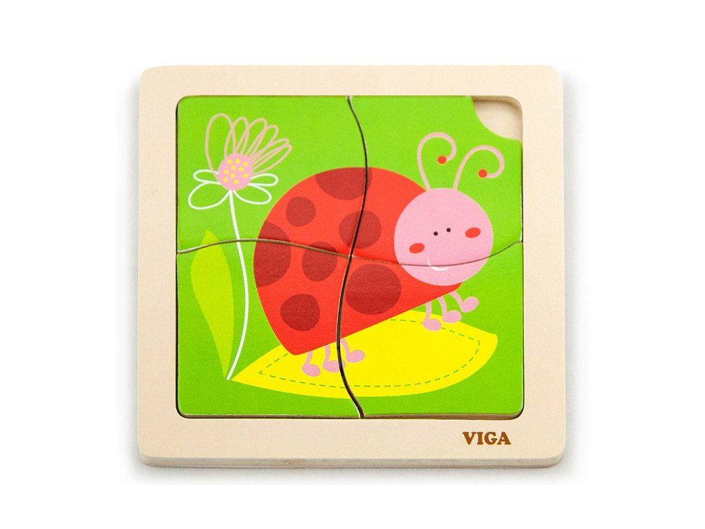 Dřevěné puzzle pro nejmenší Viga 4 ks Beruška