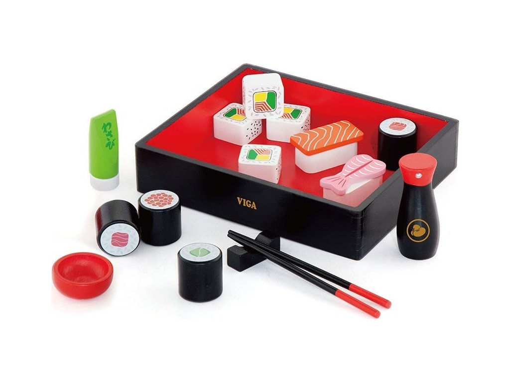 Dřevěná sada na sushi - udělá radost nejednomu dítěti. Je ideálním doplňkem do dětské kuchyňky, kde se naše batole učí vařit. Sada je ideální pro procvičování koordinace oko-ruka, podporuje kreativní hru, rozvíjí představivost, obohacuje slovní zásobu a učí o kultuře a kuchyni jiných zemí.