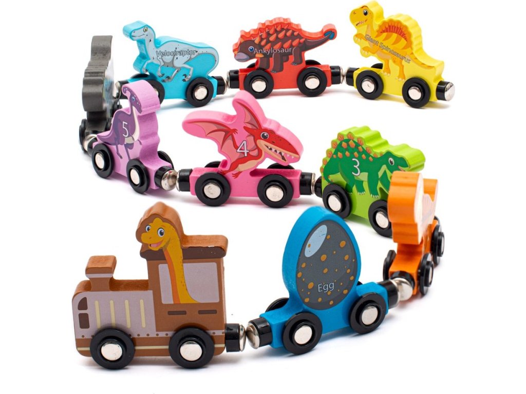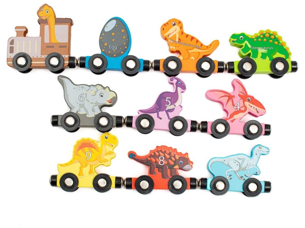 - Design: Barevné a detailní zpracování dinosaurů, včetně číselné řady na každém vagónku.