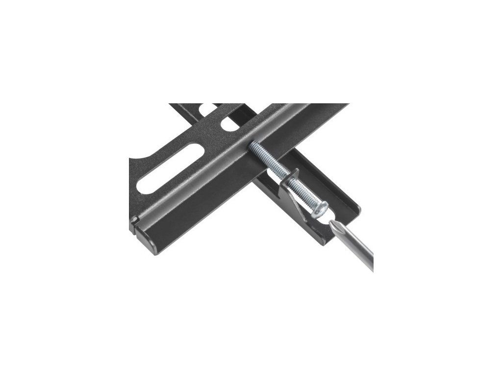 Nástěnný držák je určen pro instalaci TV s plochou obrazovkou s úhlopříčkami od 23“ do 43“ a hmotností až do 45 kg. Super tenký design, poskytuje maximálně stabilní a bezpečné uchycení televizoru na stěnu.