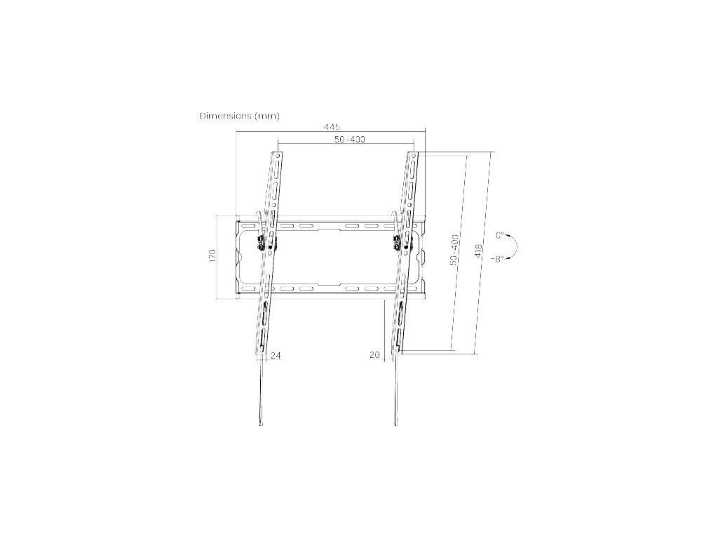 • Volně sklopitelná konstrukce pro jednoduchou změnu náklonu TV v úhlu 0°~-8°