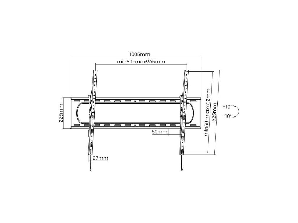 • Volně sklopitelná konstrukce pro jednoduchou změnu náklonu TV v úhlu +10°~-10°