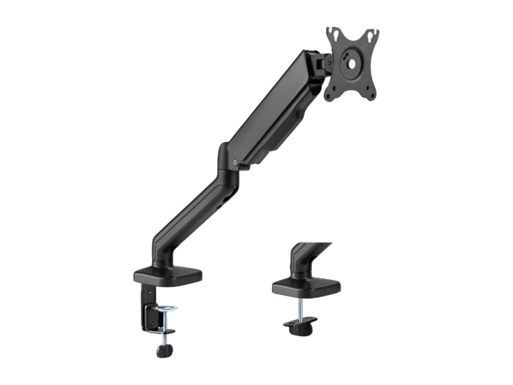 Díky odolné ocelové konstrukci poskytuje stabilní podporu pro jeden monitor s úhlopříčkou 17" až 32" a hmotností až 9 kg. Flexibilní konstrukce pro dostatečné nastavení výšky a pozorovacích úhlů s možností nastavení orientace monitoru na výšku nebo na šířku. Součástí balení jsou průchodky a svorky pro instalaci na téměř jakoukoliv pracovní plochu. Odnímatelná deska VESA pro uživatelsky přívětivou instalaci.