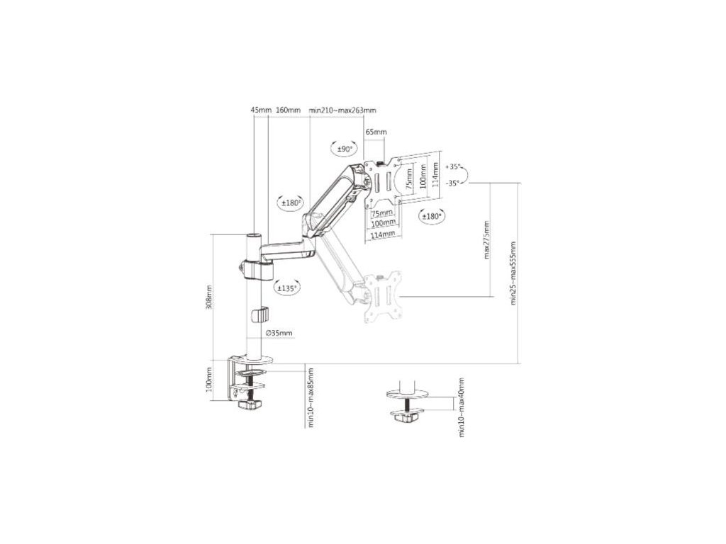 • Flexibilní nastavení polohy: Držák umožňuje snadné nastavení výšky pomocí plynové vzpěry, nastavitelný náklon monitoru v úhlu +35° / -35°, otočení monitoru o 360°, nastavení úhlů ramene o 180°, takže můžete snadno najít optimální pozici pro pohodlné a ergonomické používání. Odnímatelná deska VESA umožňuje snadnou instalaci monitoru.