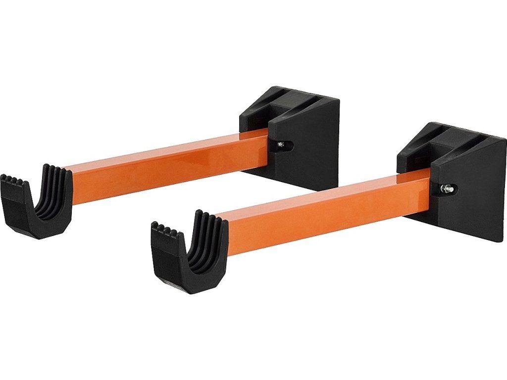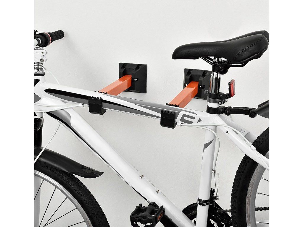 Dvoudílný, sklápěcí držák jízdního kola určený k montáži na stěnu.
