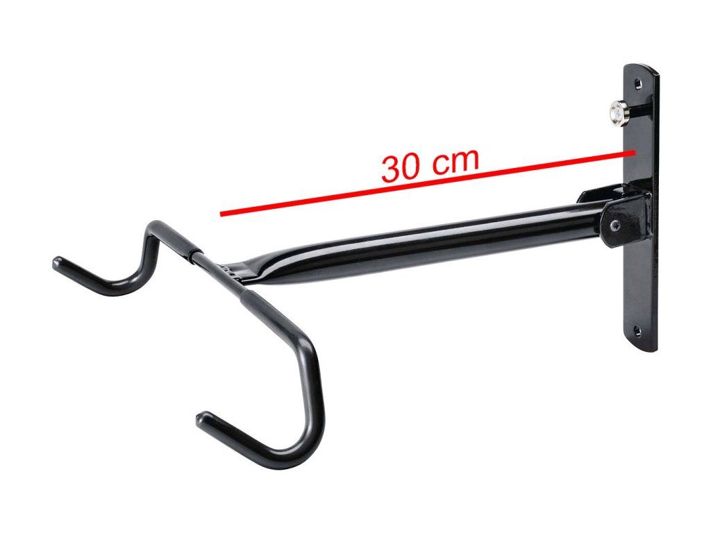Sklápěcí kovový držák jízdního kola určený k montáži na stěnu.