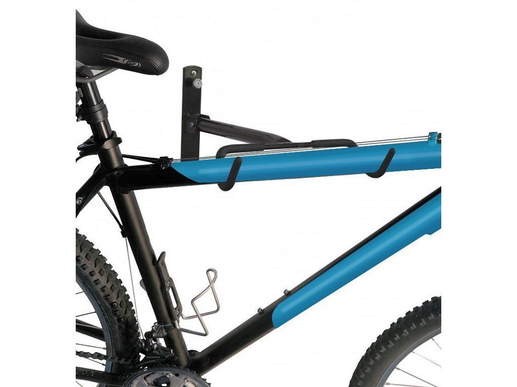 Držák je tvarován pro zavěšení za rám bicyklu, tím šetří místo a usnadňuje skladování kol. Navíc je opatřen magnetem, díky kterému je možné jeho bezpečné sklopení při nepoužívání pro ještě větší úsporu místa. Konstrukce držáku je celokovová s pogumovaným zakončením.