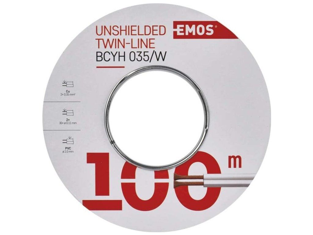 Dvojlinka nestíněná 2x0,35mm bílá, 100m
