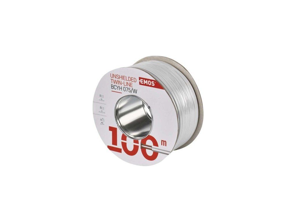 Nestíněná dvojlinka (vodič) s průřezem 2 × 0,75 mm2. Dvojlinka má bílou barvu a plášť z PVC.