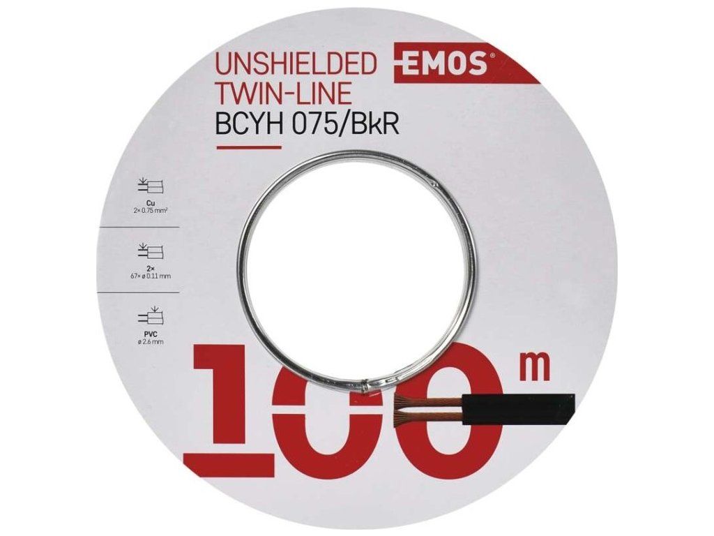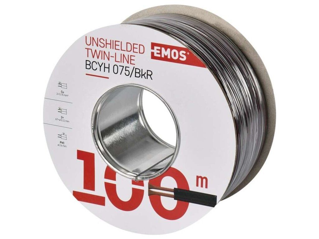 Nestíněná dvojlinka (vodič) s průřezem 2 × 0,75 mm2. Dvojlinka má černou barvu barvu izolace s jedním vodičem označeným červeným proužkem. Plášť kabelu je vyroben z PVC.