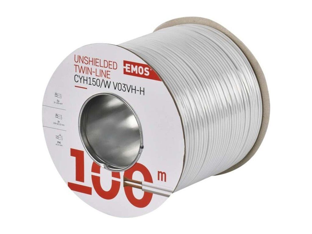 Dvojlinka nestíněná 2x1,5mm bílá, 100m