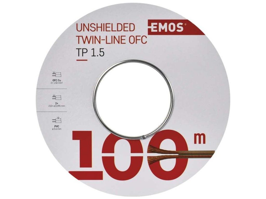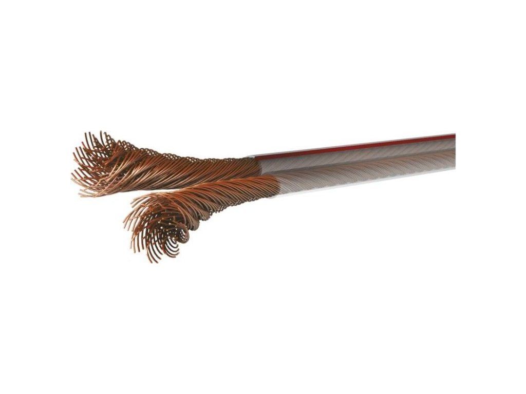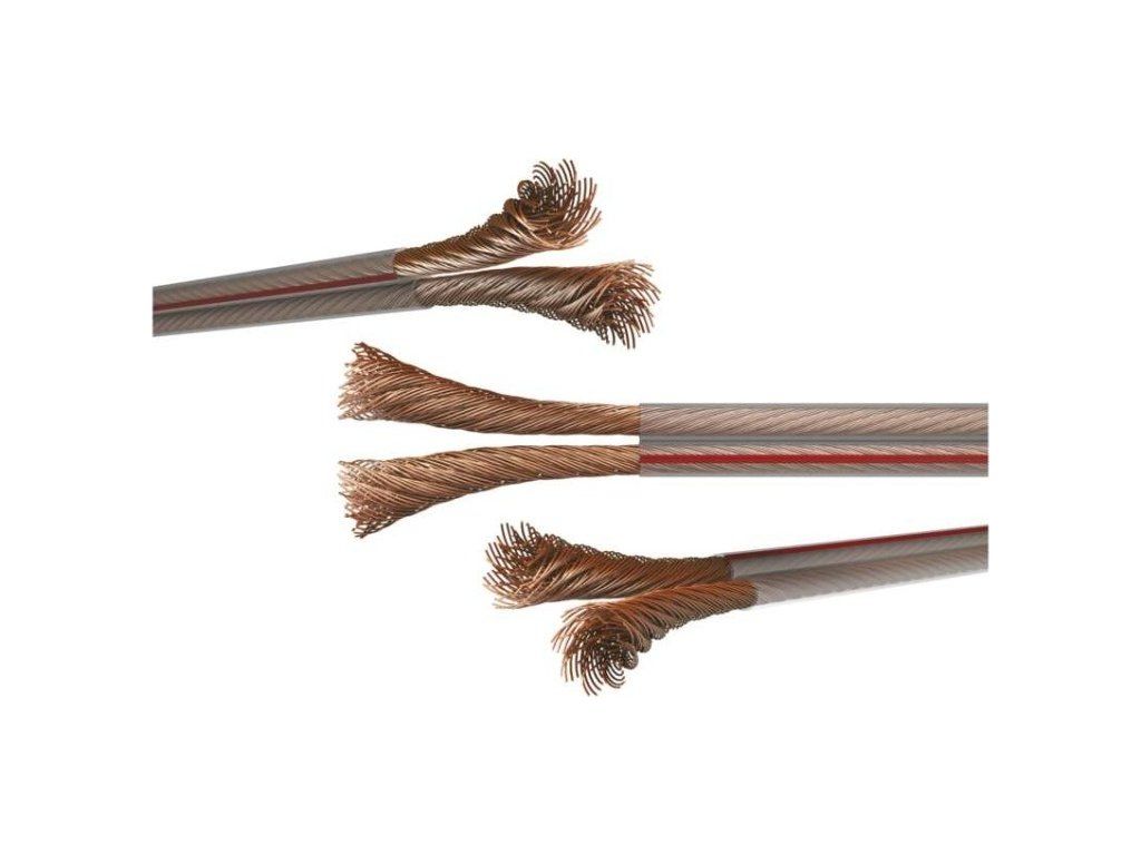 Průhledná dvojlinka z bezkyslíkaté OFC mědi (transparentní vodič) s průřezem 2 × 1,50 mm2. Tato dvojlinka je vhodná např. pro přenos audio signálu.