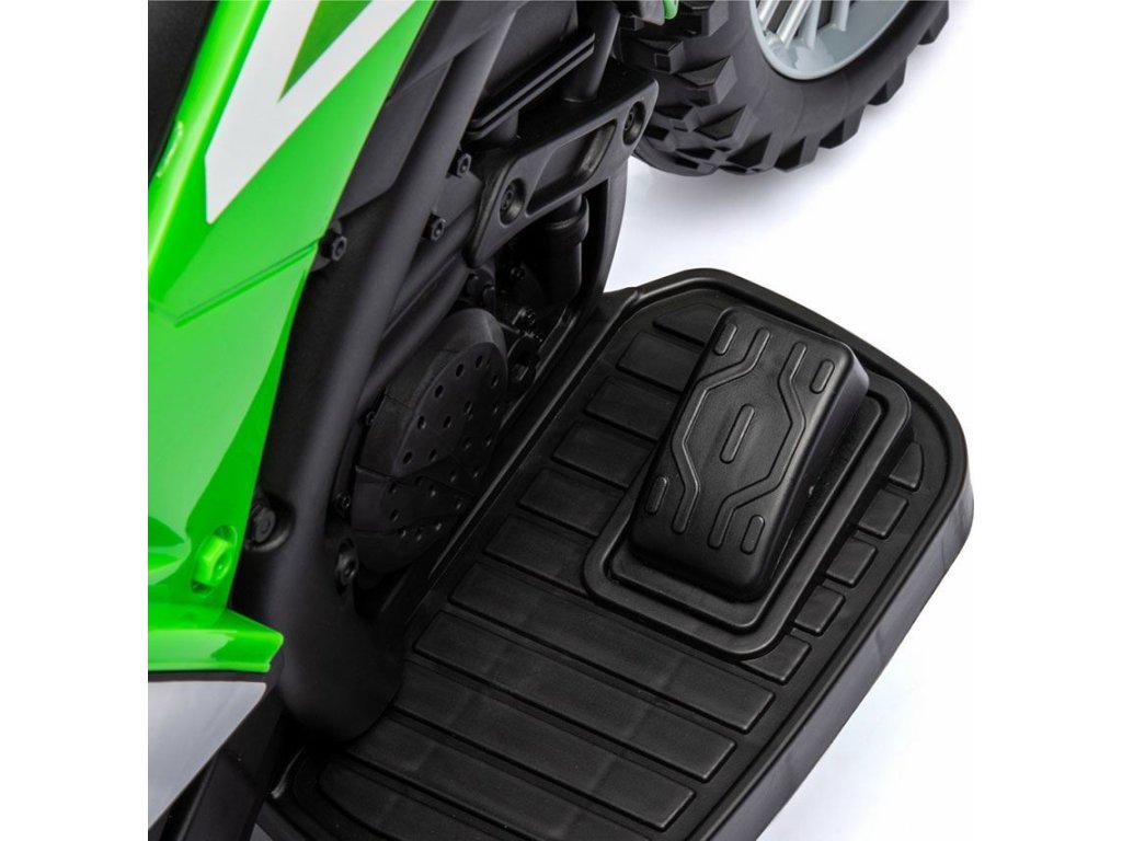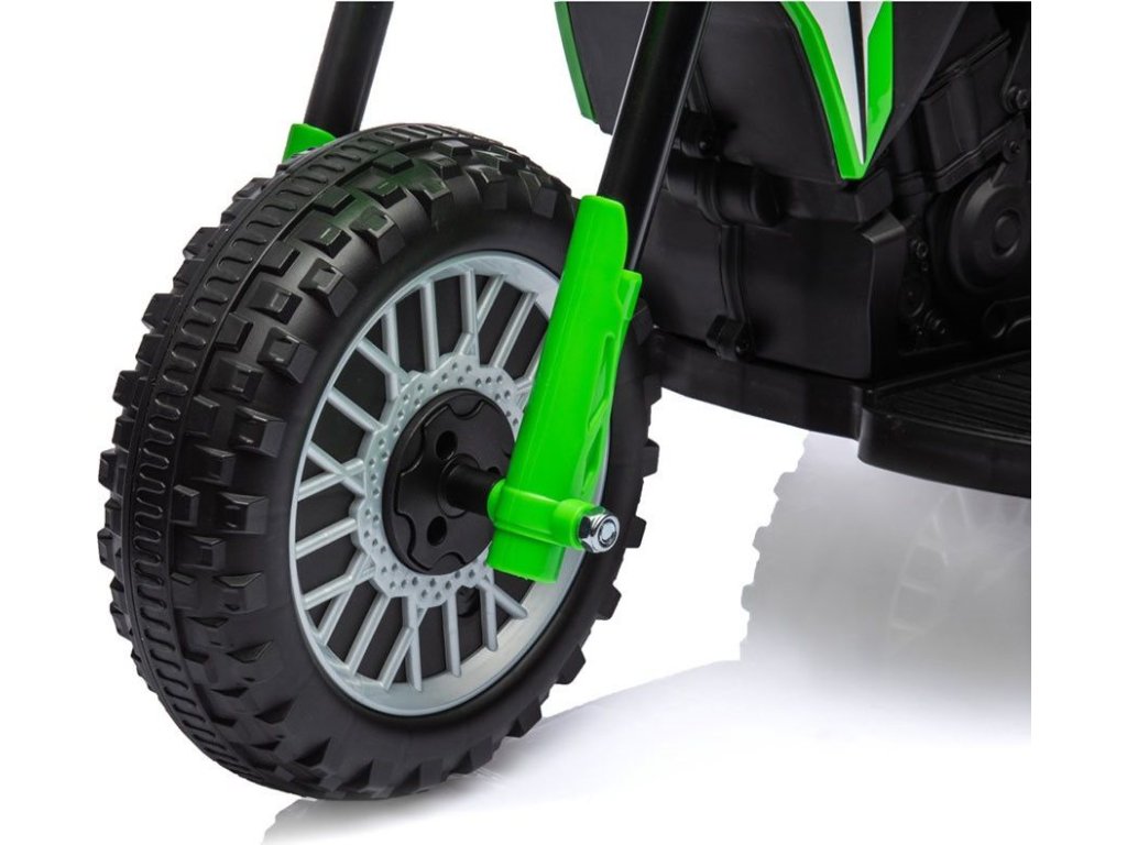Po zapnutí se ozve zvuk motoru a po sešlápnutí plynového pedálu se motorka rozjede. Velká kola s terénním vzorkem zajišťují stabilitu při jízdě venku a tvarované sedadlo zajišťuje pohodlí a bezpečnost nejmenších uživatelů. Ocelové osy kol zaručují stabilitu a odolnost vozidla. Součástí je také klakson, díky kterému bude hraní ještě zábavnější.