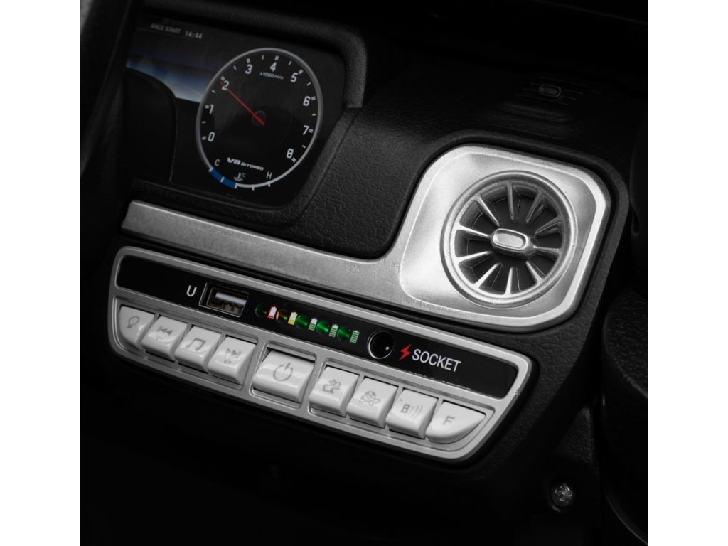 Autíčko vychází z oblíbeného modelu Mercedes-Benz G63 AMG a zaujme svým precizním zpracováním do nejmenšího detailu – od sportovního volantu přes přehlednou palubní desku až po stylová kola s logem Mercedes. Otevírací dveře a přední LED světla dodávají autíčku ještě autentičtější vzhled.