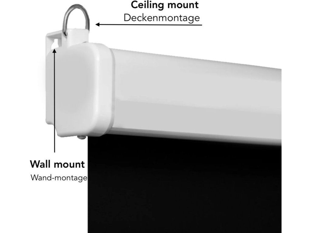 Manuální plátno typu roleta s úhlopříčkou 120" a bílou konstrukcí. Slow Retract mechanismus pro bezpečný automatický návrat plátna. Vhodné pro projektory se standardní projekční vzdáleností.