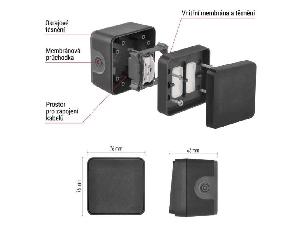 Krytí IP55. Bezšroubové svorky.