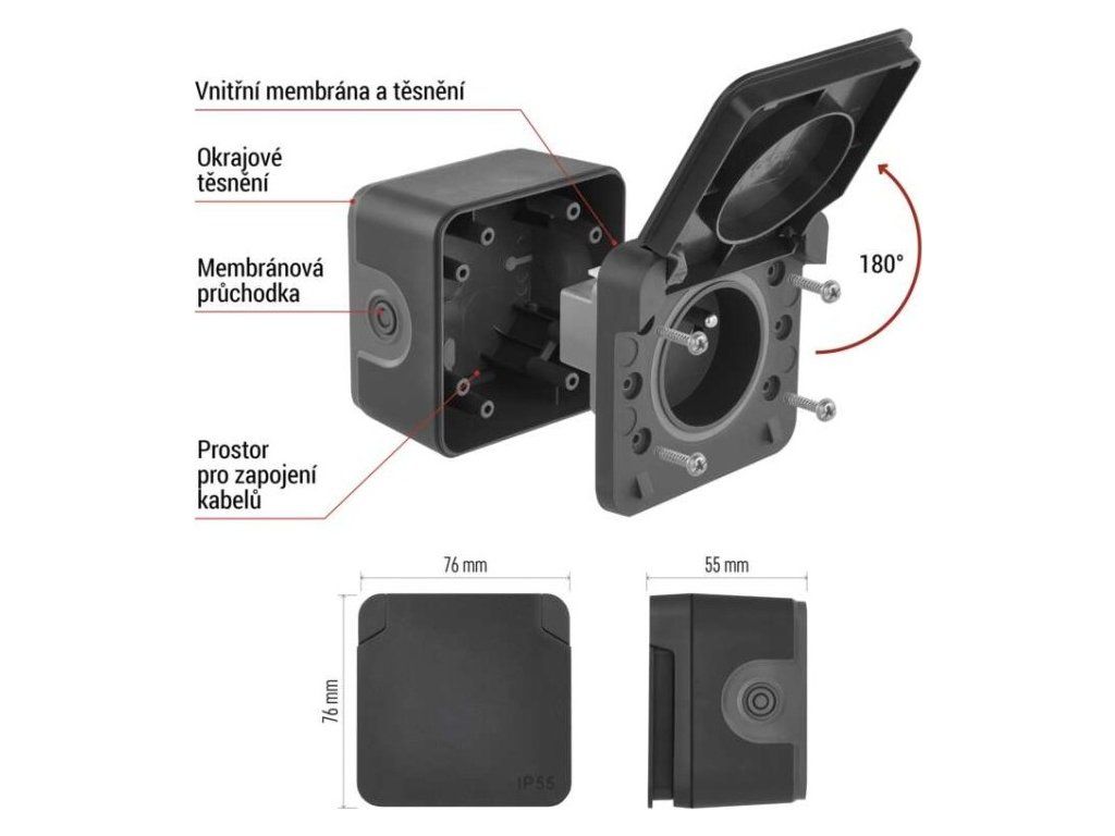 Krytí IP55. Bezšroubové svorky.