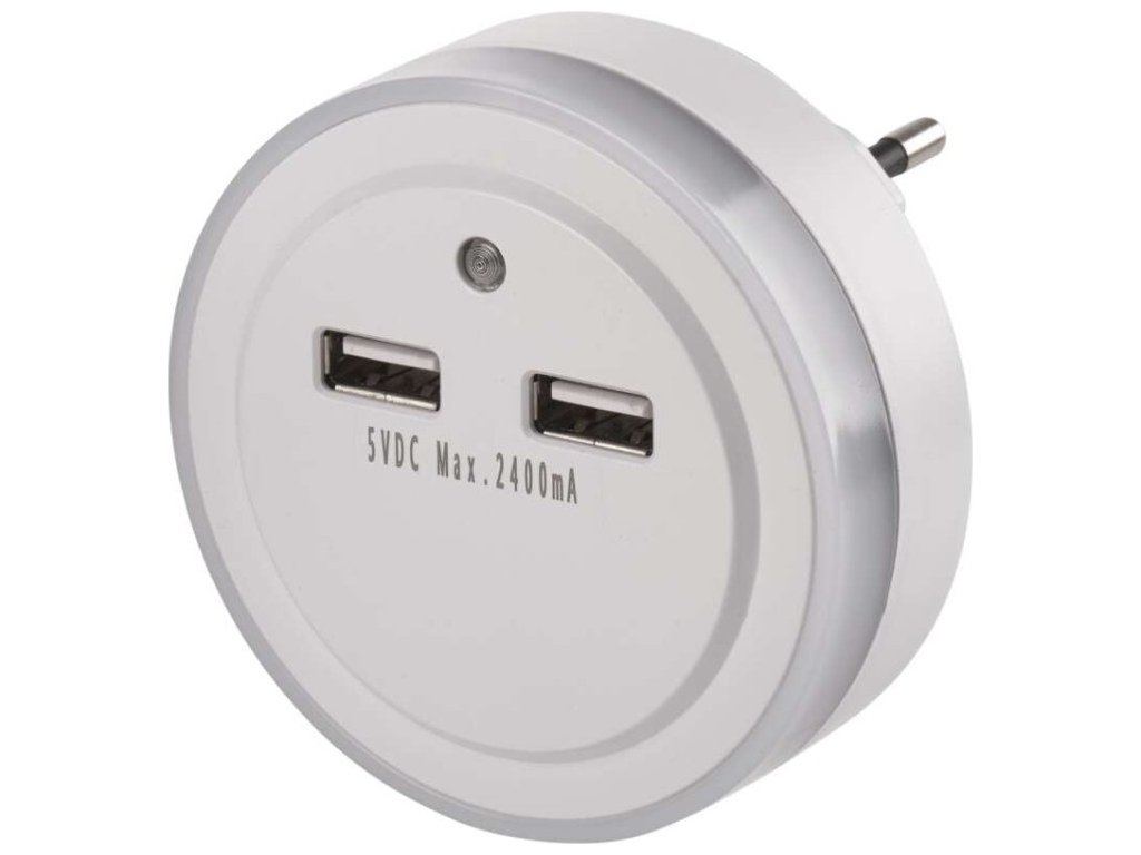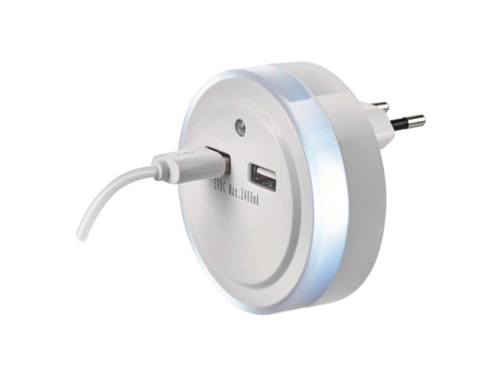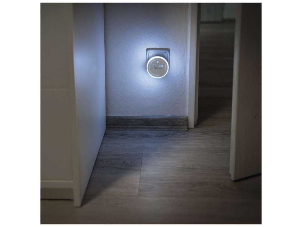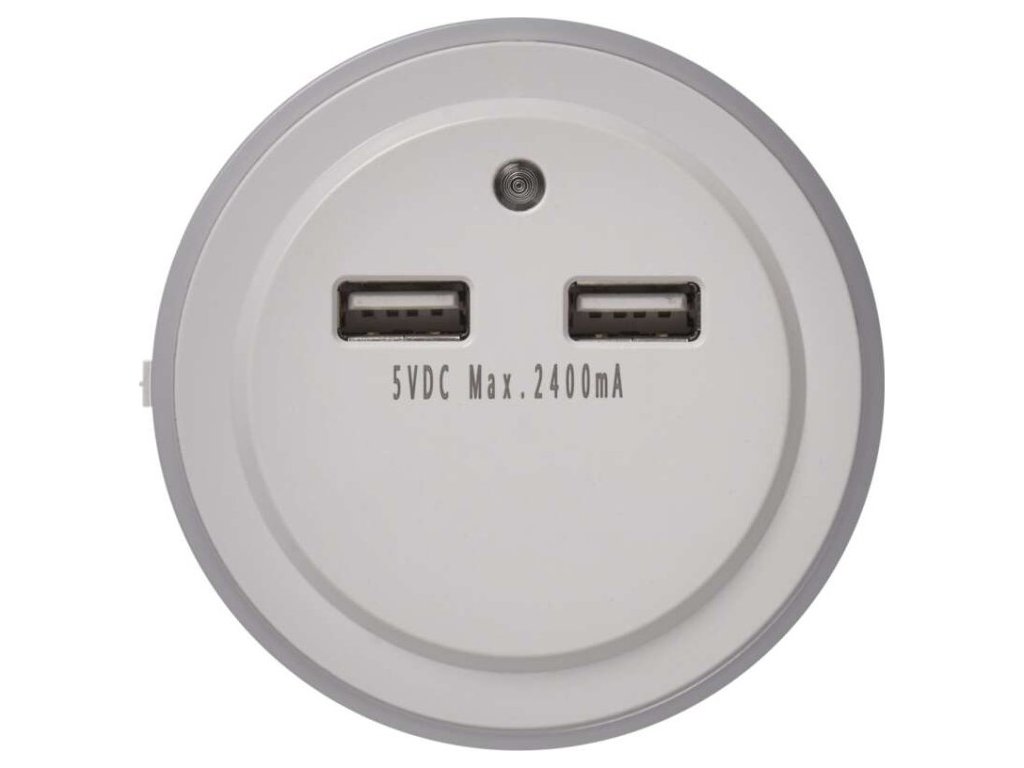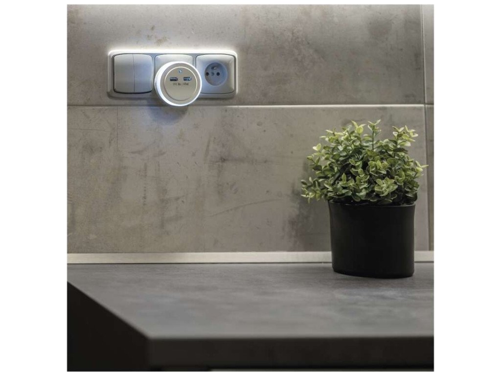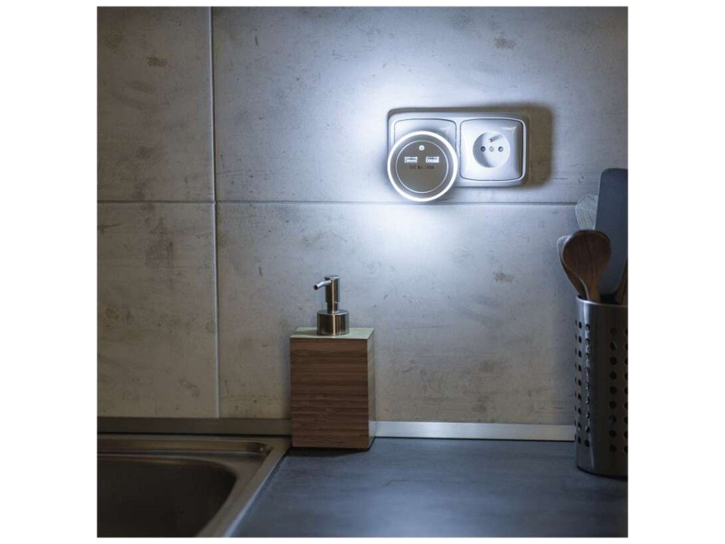 Praktické LED noční světlo do sítě s foto sensorem. Skvělé nejen tam, kde potřebujete nouzové osvětlení. 2× USB výstup pro napájení různých zařízení.