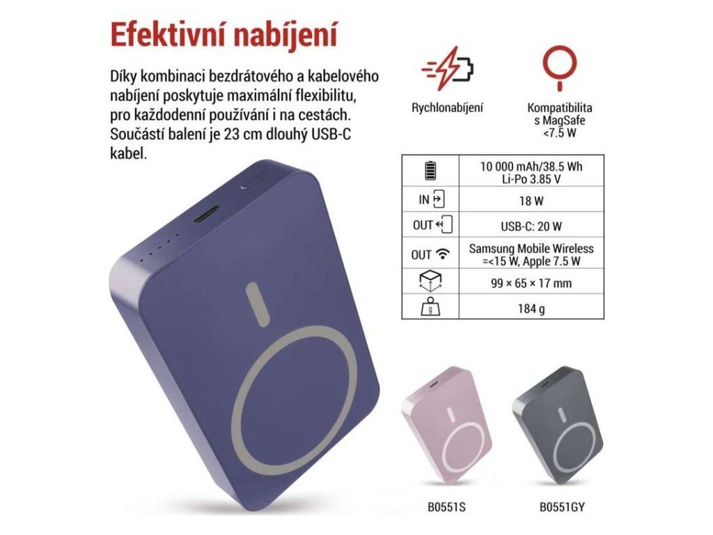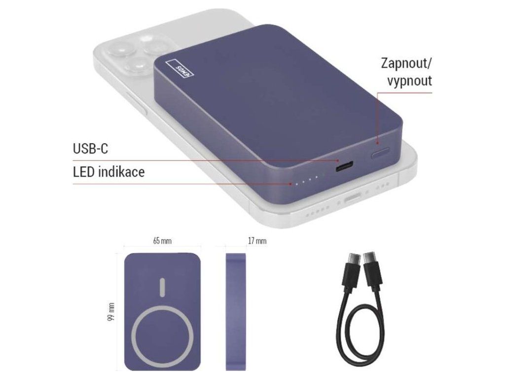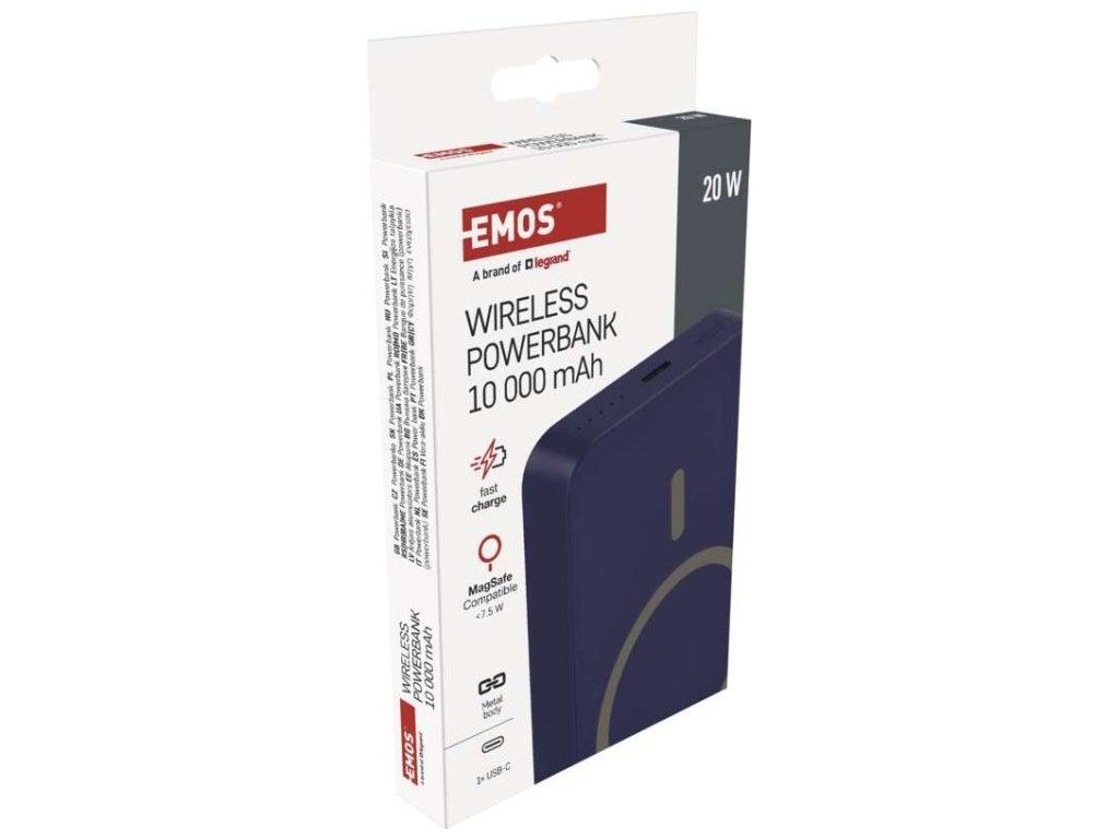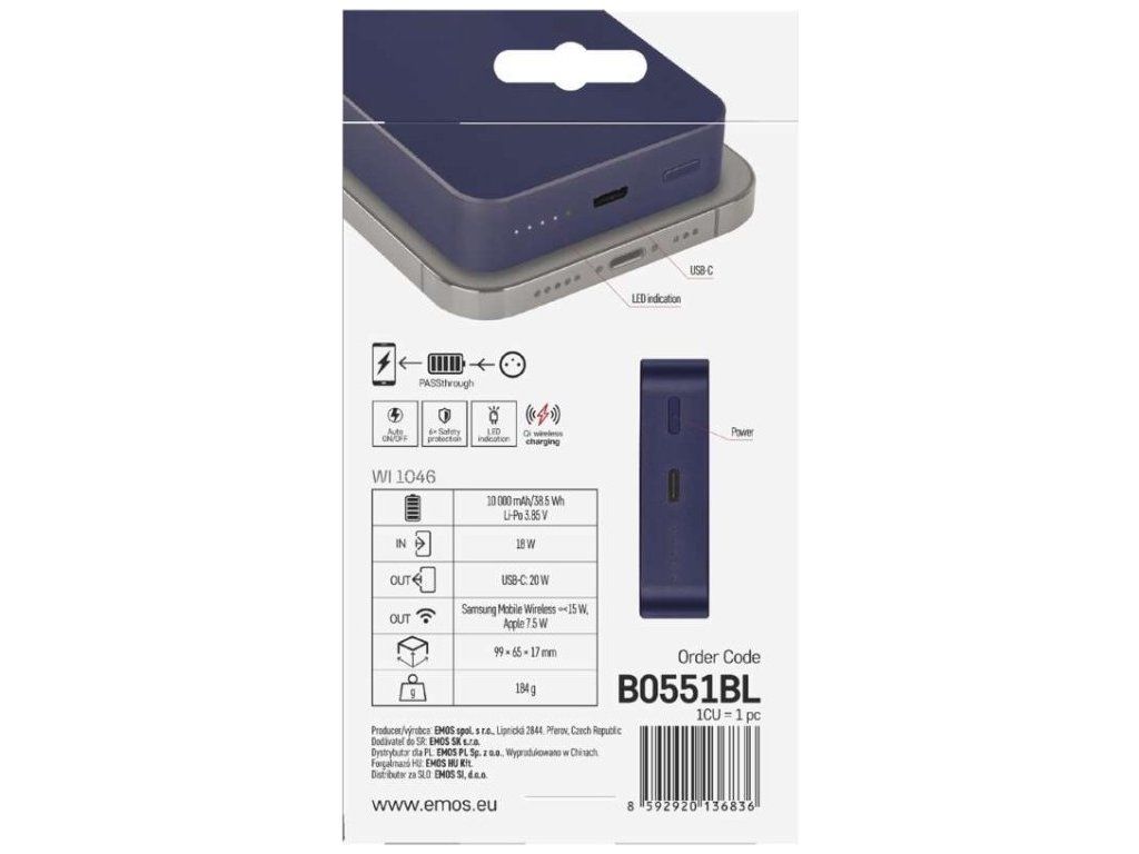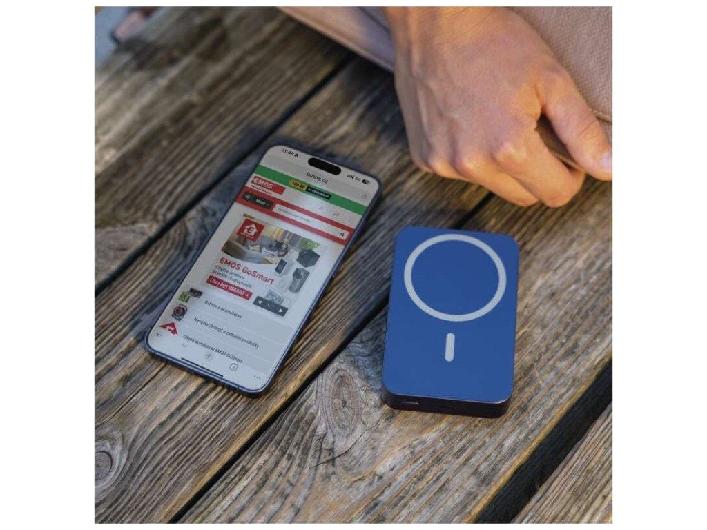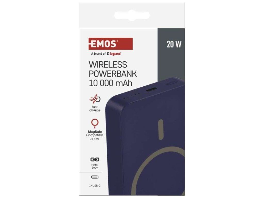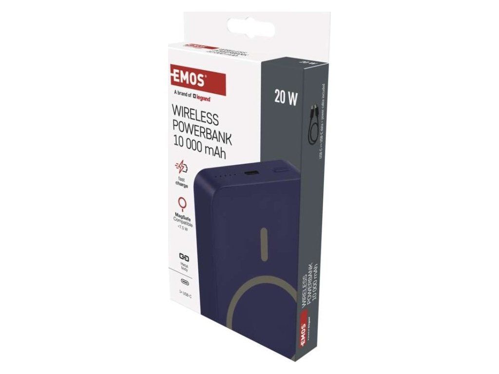 EMOS POWERBANKA WI 1046, bezdrátové nabíjení 20W, 10.000mAh, MODRÁ, 1xUSB-C