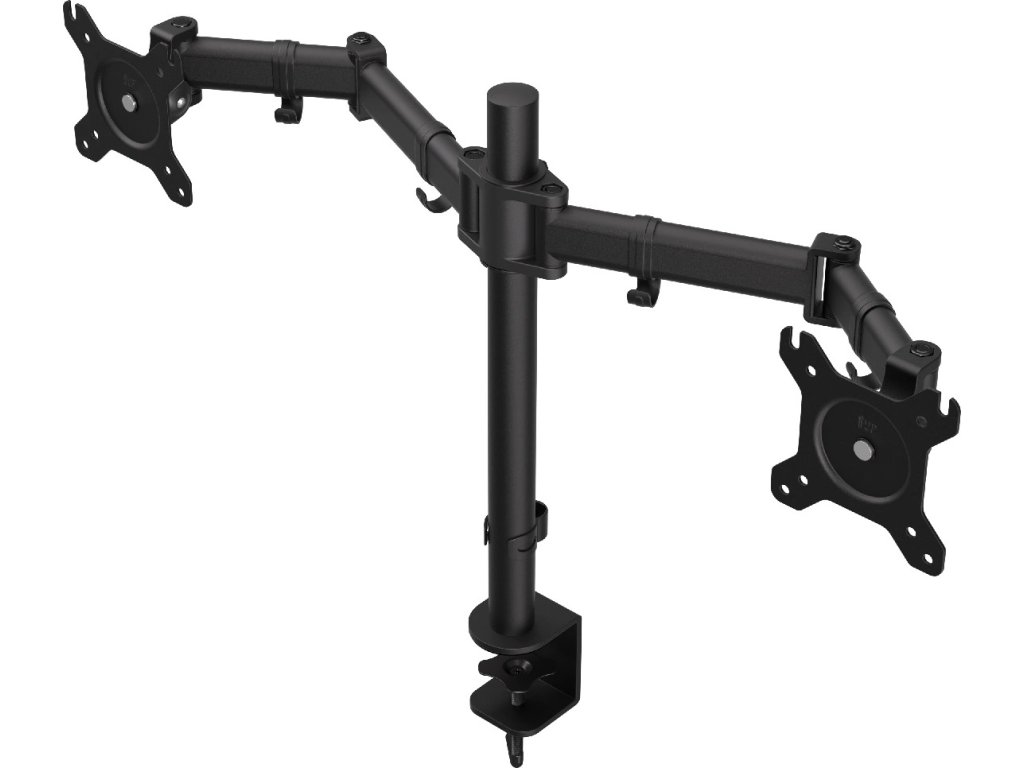 - Plně pohyblivý stolní držák pro dvě ploché obrazovky s úhlopříčkou do 27"