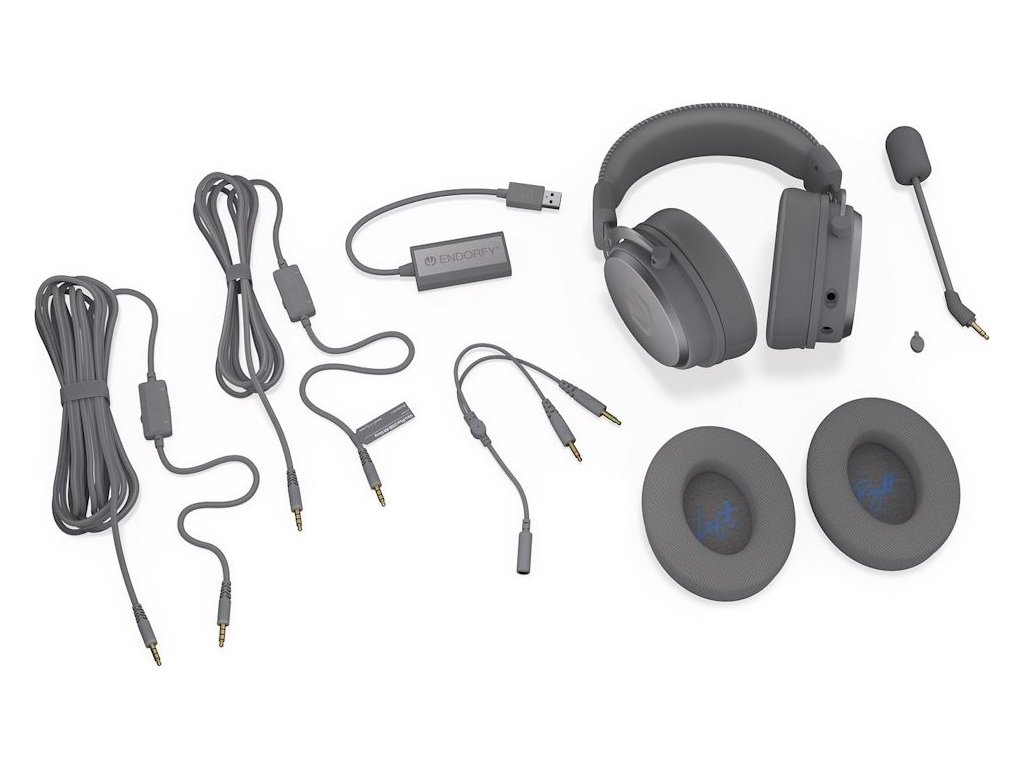 Kompletní sada obsahuje sluchátka, odnímatelný mikrofon, USB 7.1 zvukovou kartu, dva kabely různých délek, adaptér, náhradní náušníky a záslepku konektoru mikrofonu.