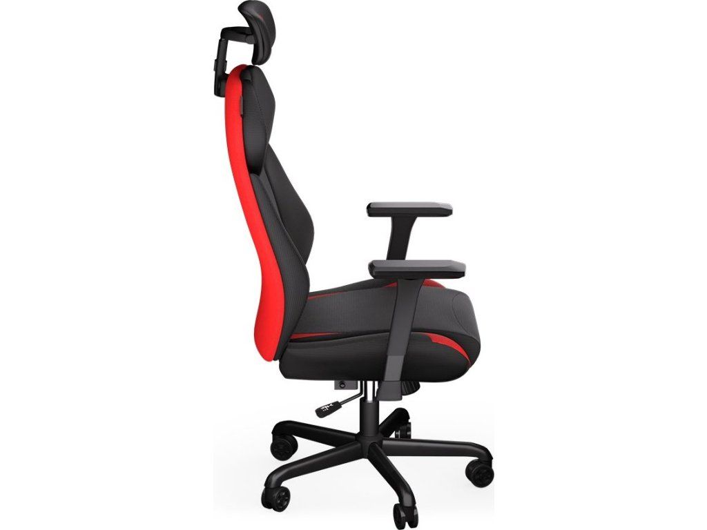 Robustní herní židle s atraktivním designem poskytuje dokonalou oporu a pohodlí i při dlouhém sezení u počítače. Je vyrobena z kvalitní prodyšné textilní látky a syntetické kůže. Nastavitelná výška židle, opěrky rukou nastavitelné ve všech směrech a úhel sklonu opěradla až 125° zajistí maximální komfort. Kolečka o průměru 60 mm jsou pokryta vrstvou odolného nylonu, který zároveň chrání podlahu před poškrábáním a snižuje hlučnost. Nosnost židle je až 120 kg.