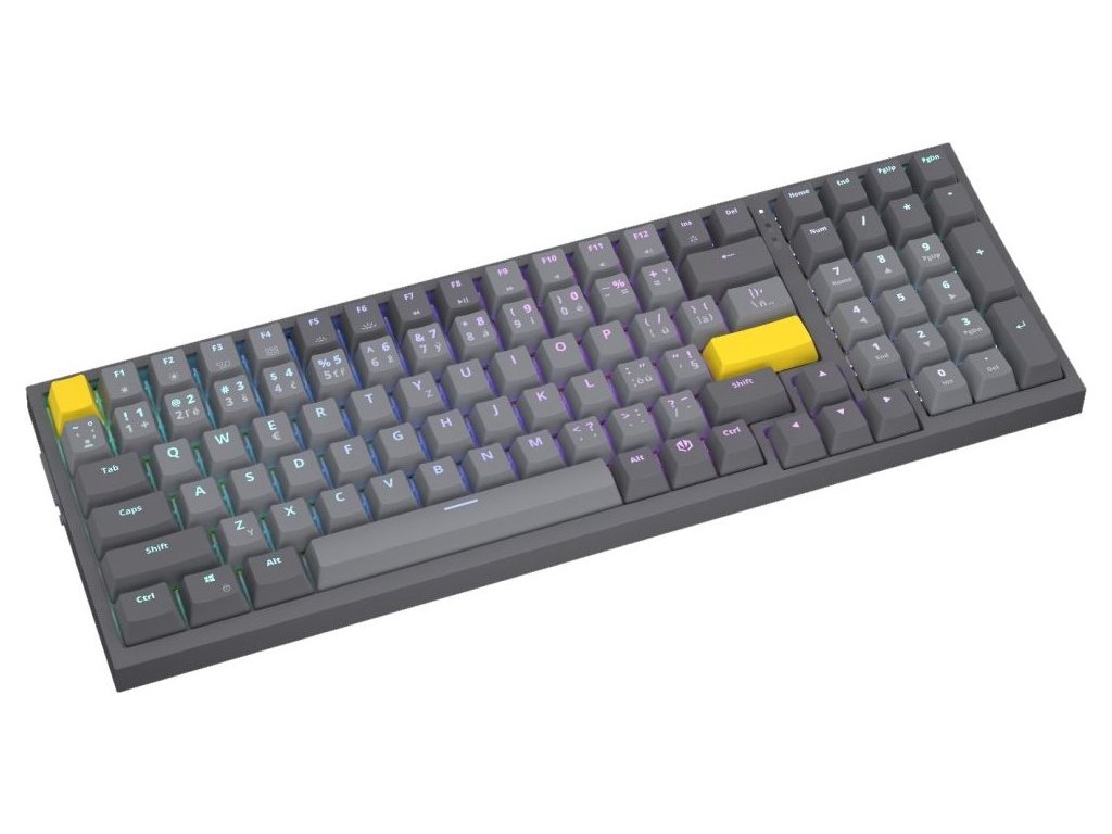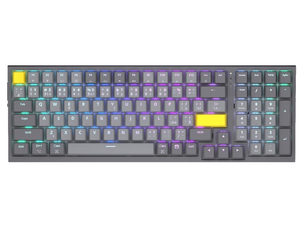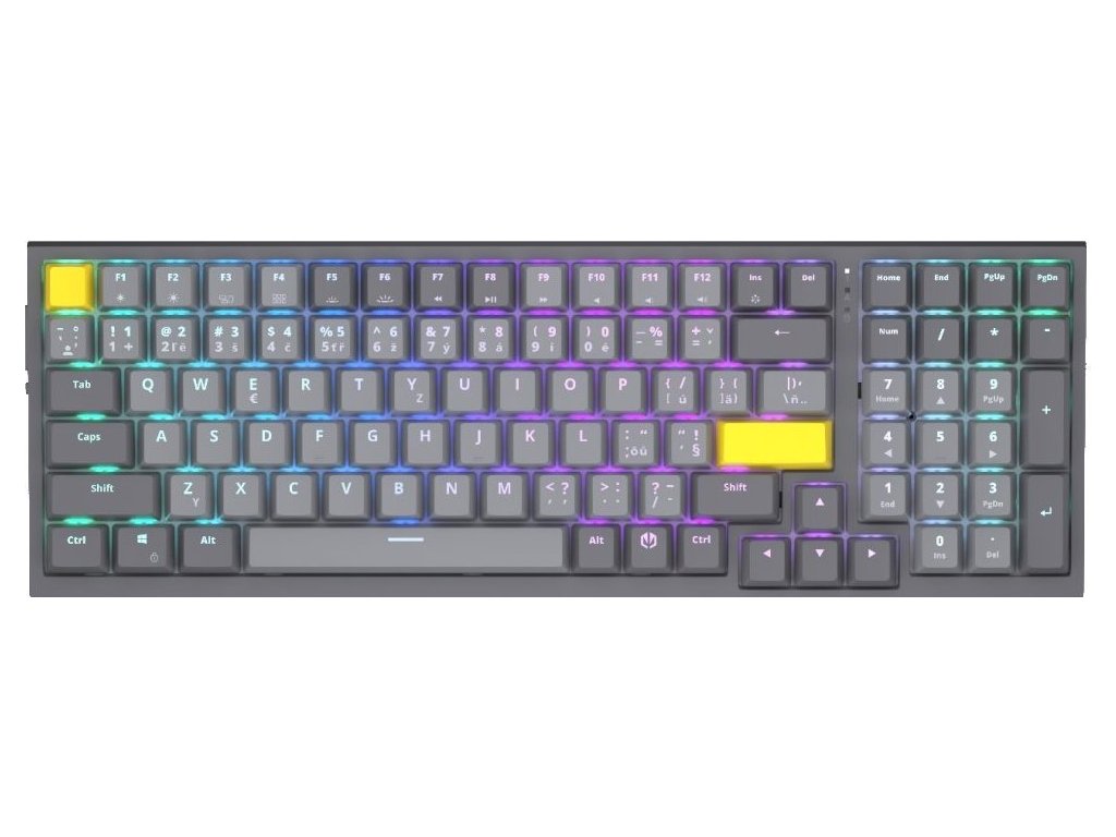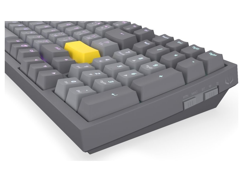Moderní mechanická klávesnice navržená pro uživatele, kteří hledají dokonalou kombinaci kompaktního designu, pohodlí a technické preciznosti. Díky univerzálnímu rozložení typu 1800 s plnohodnotným numerickým blokem poskytuje veškeré funkce klasické klávesnice, a přitom šetří místo na stole. Kompatibilita se systémy Windows, macOS, Linux i Android umožňuje flexibilní využití napříč zařízeními, přičemž přepínání mezi nimi je otázkou sekund díky podpoře Bluetooth, 2,4GHz donglu a USB připojení. Výkonná baterie vydrží na jedno nabití až 120 hodin provozu, což zajišťuje dlouhodobé používání bez nutnosti častého dobíjení.