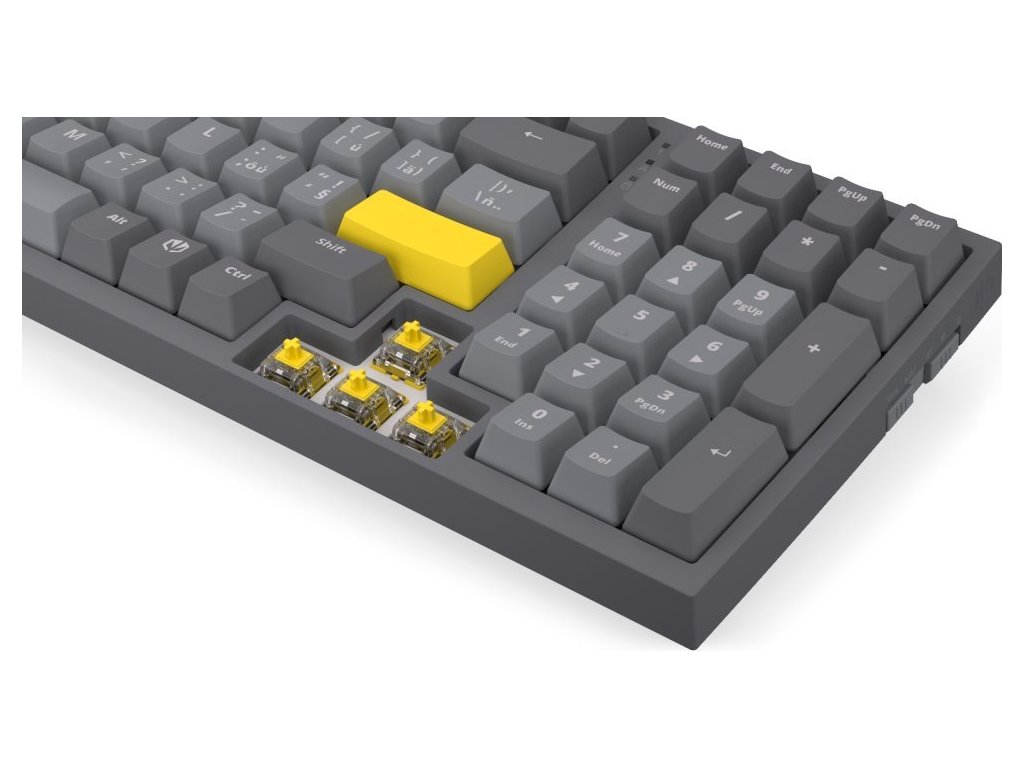 Výjimečný zážitek z psaní zajišťují lineární spínače Endorfy Yellow by Gateron, které jsou již z výroby lubrikované, a navíc umožňují snadnou výměnu díky funkci hot-swap. Klávesnice je dále osazena dvojitou silikonovou výplní pro snížení vibrací a hlučnosti, zatímco horní deska z FR4 materiálu (epoxid s výztuží ze skelných vláken) přispívá k pevnosti a stabilitě konstrukce.