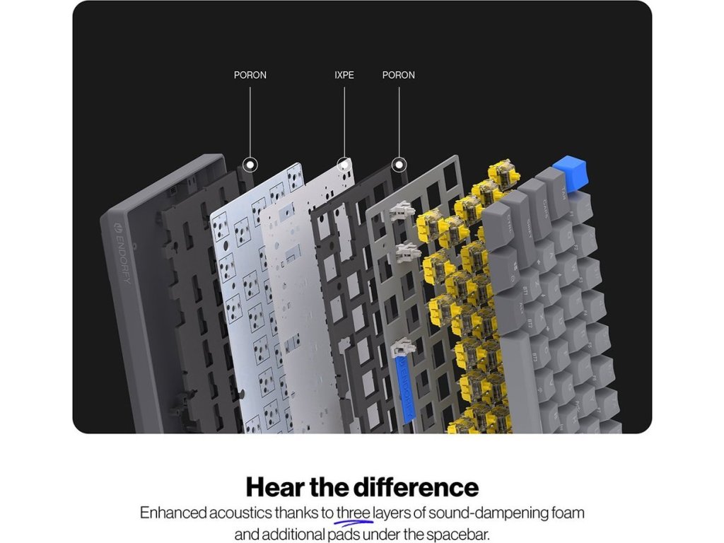 Provedení s 3 vrstvami akustické pěny eliminuje vibrace a dutý zvuk, aby klávesnice nezněla jako roky zrezlé železo. Nastavitelné ARGB podsvícení se zavděčí všem hráčům, kteří kromě výsledků kladou důraz také na patřičný styl. Hračičkové pak jistě ocení podporu softwaru pro přemapování kláves nebo tvorbu maker.