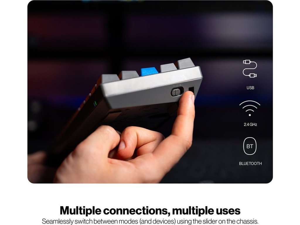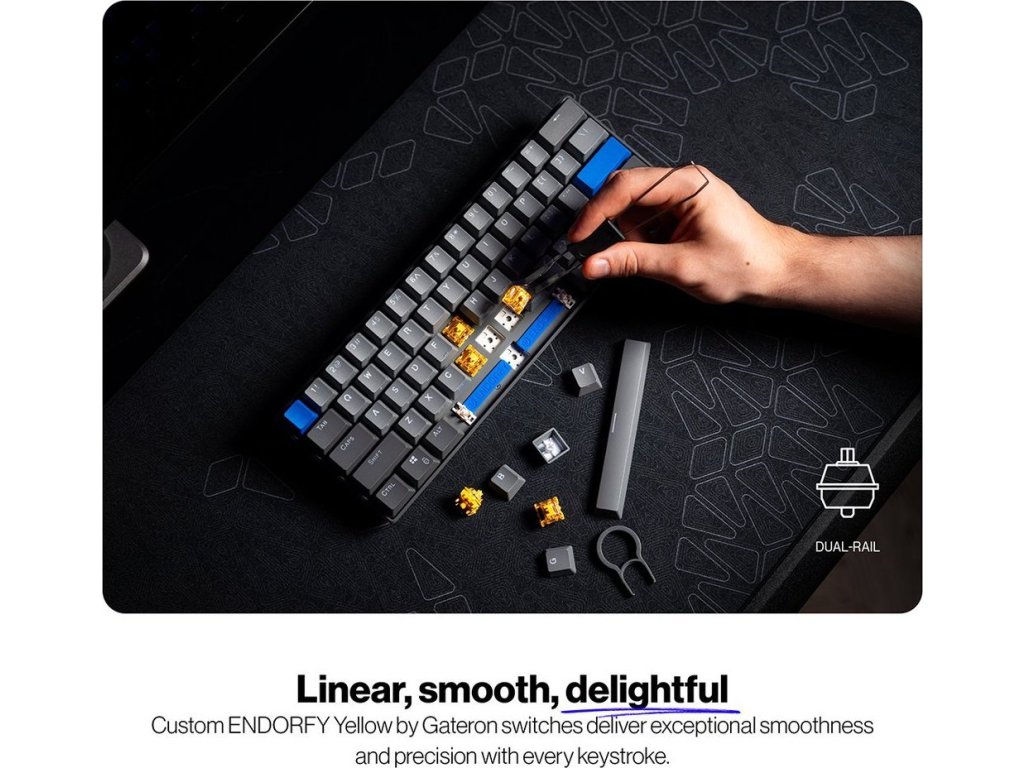 Díky malým rozměrům je lehká, snadno přenosná a ideální pro LAN párty. Konstrukce s horní hliníkovou deskou funguje jako opevnění proti mechanickému poškození. Ať je vaše vůle vyhrát jakkoli silná, Endorfy Thock V2 Compact Wireless to ustojí s přehledem. Lineární mechanické spínače Endorfy Yellow by Gateron podporují plynulost a přesnost s každým jedním stiskem. Kromě drátového připojení podporuje tento model také bezdrátovou konektivitu pomocí Bluetooth nebo přes 2,4GHz přijímač.