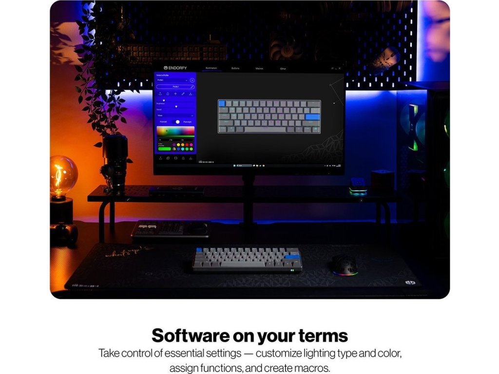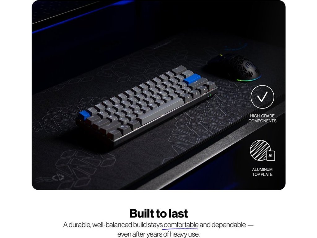 Model Endorfy Thock V2 Compact Wireless CZ vám dokáže, že pro velká vítězství není potřeba obří gamingová klávesnice. Herní mechanická klávesnice dosahuje pouze 60% layoutu, a přesto vám dá všechno, co potřebujete. Zkrátka minimalistický design s maximálním výkonem. 60klávesové rozložení je ideální pro hráče, kteří chtějí mít více místa pro myš a další důležitou výbavu.