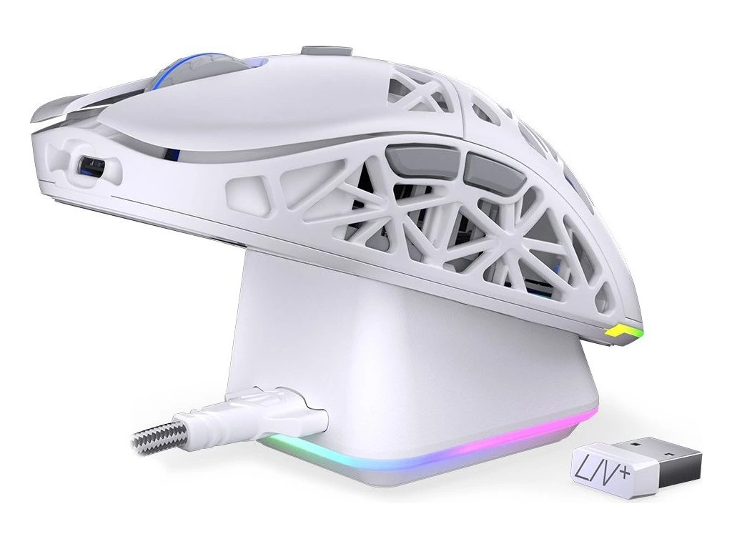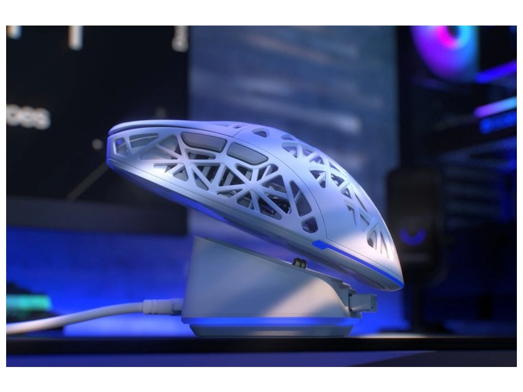 Ultra lehká bezdrátová herní myš disponující 6 programovatelnými tlačítky a vysoce přesným optickým senzorem Pixart PAW3395 s nastavitelným rozlišením až 26 000 DPI. Herní design doplňuje adresovatelné RGB podsvícení. Kvalitní spínače Kailh GM 8.0 vydrží více než 80 milionů kliků. Napájení zajišťuje vestavěná dobíjecí baterie s kapacitou 500 mAh. Myš lze jednoduše nabíjet pomocí dokovací stanice. Připojení lze jednoduše realizovat skrze USB kabel, technologii 2,4 GHz a miniaturní USB přijímač nebo pomocí Bluetooth.